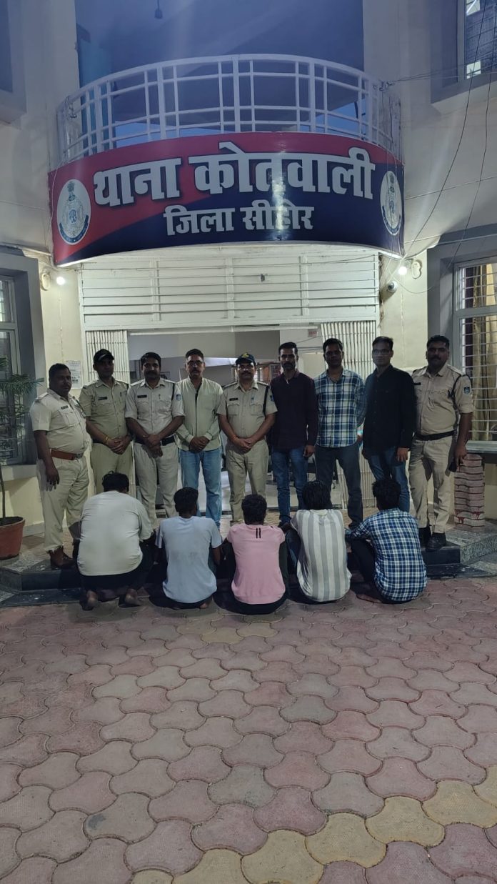 घटना का संक्षिप्त विवरण दिनांक 01.05.2025 को थाना कोतवाली में फरियादी सतीश राय पिता स्वर्गीय श्री लाल चंद्र जी राय निवासी टाइगर विला ब्रह्मपुरी कॉलोनी सीहोर थाने में रिपोर्ट किया कि मेरी लड़की की शादी गुलशन गार्डन झागरिया चौराहे के पास थी पूरा परिवार शादी में था तभी रात्रि में किसी अज्ञात चोर द्वारा मेरे घर के पीछे से घर के ताले तोड़कर सोने चांदी का सामान एवं नगदी चोरी कर ले गया है रिपोर्ट पर थाना कोतवाली में अपराध पंजीबद किया जाकर विवेचना में लिया गया मामले की गंभीरता को देखते हुये श्रीमान पुलिस अधीक्षक महोदय दीपक शुक्ला, श्रीमान अतिरिक्त पुलिस अधीक्षक महोदय सुनीता रावत, श्रीमान नगर पुलिस अधीक्षक महोदय निरंजन सिंह राजपूत के मार्गनिर्देशन में अज्ञात चोरों एवं मसरूका की पतारसी हेतु थाना प्रभारी कोतवाली के नेतृत्व में टीम का गठन किया गया।