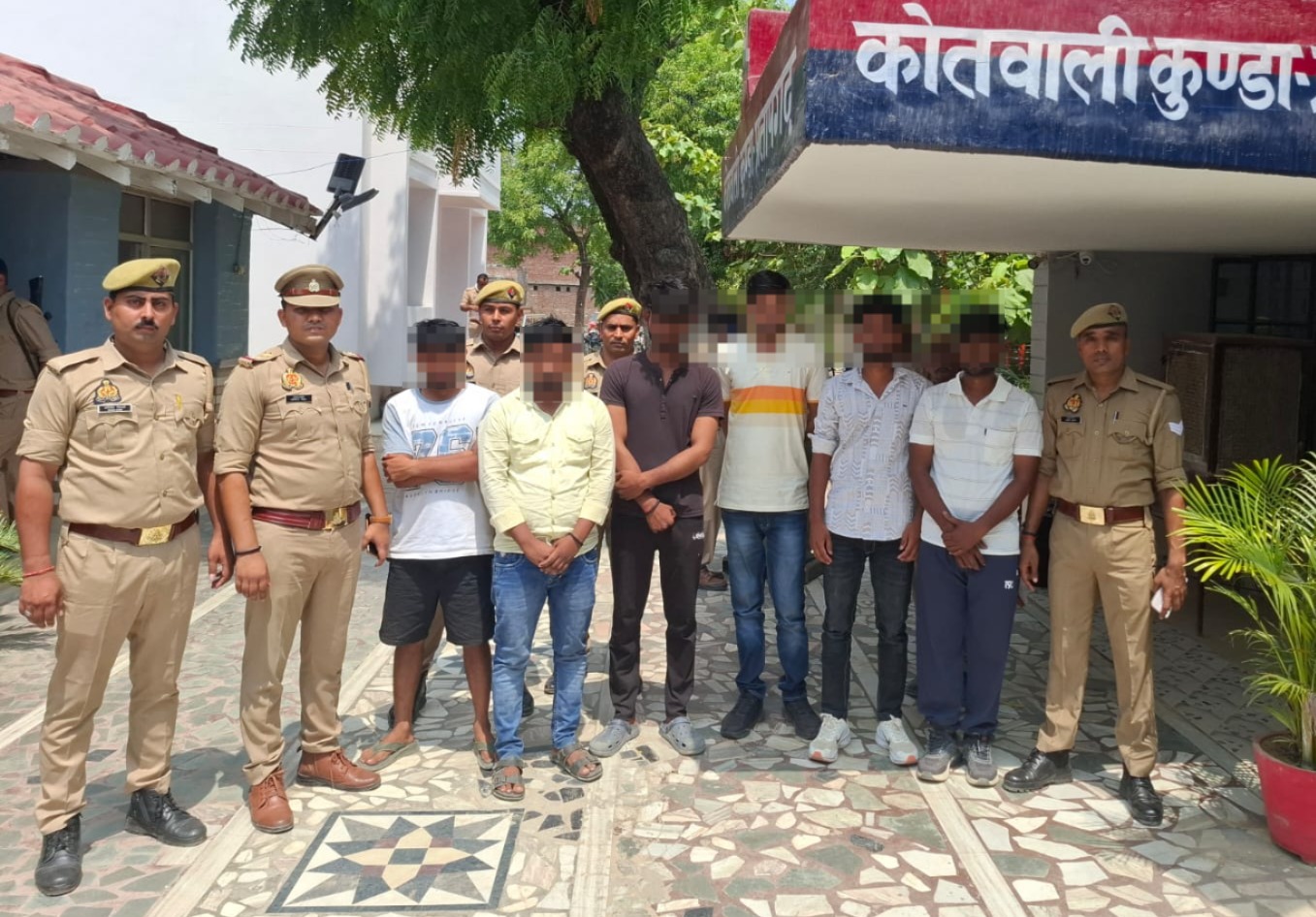 प्रतापगढ़ कुंडा कोतवाली क्षेत्र बदलावन का पुरवा स्थित श्याम स्वाद ढावा के पास से गिरफ्तार किया गया वादी की पुत्री की शादी अन्यत्र तय होने पर अभियुक्तों ने दूल्हा व बारातियों को जान से मारने की धमकी दी और 10 लाख रुपये की मांग कीदिनांक 26.05.2025 को वादी की पुत्री की शादी अन्यत्र करने पर अभियुक्तों द्वारा दुल्हा तथा बारातियों को जान से मार डालने की धमकी देना अथवा इसके बदले में 10 लाख रुपये नगद देने की मांग की गई जिसके सम्बंध में वादी की तहरीर के आधार पर थाना कुण्डा पर मु0अ0सं0- 137/2025 धारा 308 (5), 351(3), 3(5) बीएनएस बनाम 06 नामजद अभियुक्तों का अभियोग पंजीकृत किया गया था पुलिस अधीक्षक प्रतापगढ़ डाॅ0 अनिल कुमार द्वारा अभियुक्त वांछित अपराधी की गिरफ्तारी हेतु चलाये जा रहे अभियान के अंतर्गत अपर पुलिस अधीक्षक पश्चिमी श्री संजय राय एवं क्षेत्राधिकारी कुण्डा श्री अमरनाथ गुप्ता के पर्यवेक्षण में थाना प्रभारी कुण्डा श्री अवन कुमार दीक्षित के नेतृत्व में उ0नि0 अंकित सिंह मय हमराह उ0नि0 राहुल कुमार, हे0का0 अशोक कुमार यादव, का0 भूपेन्द्र सिंह, हे0का0 अरविन्द सिंह, का0 अभिषेक त्रिपाठी, पीआरडी आनन्द मिश्रा द्वारा देखभाल क्षेत्र, तलाश वांछित, वारण्टी अभियुक्त व विवेचनात्मक कार्यवाही के दौरान, मुखबिर की सूचना पर थाना कुण्डा में पंजीकृत मु0अ0सं0- 137 /2025 धारा- 308(5), 351(3), 3(5) बीएनएस में वांछित 06 अभियुक्तों, 1. आनन्द गौतम पुत्र ज्ञानचन्द्र गौतम उम्र 20 वर्ष, 2. विकेश यादव पुत्र उदयभान यादव उम्र 26 वर्ष निवासीगण बदलावन का पुरवा थाना कुण्डा जनपद प्रतापगढ़ 3. पंकज गुप्ता पुत्र भोलानाथ गुप्ता उम्र 21 वर्ष, 4. आसिफ अहमद पुत्र वकील अहमद उम्र 21 वर्ष, 5. मान सिंह यादव पुत्र राममूरत यादव उम्र 21 वर्ष निवासीगण ग्राम काजीपुर करम हुसैन थाना कुण्डा जनपद प्रतापगढ़, 6. नीरज गौतम पुत्र अर्जुन प्रसाद निवासी इटौरा थाना कुण्डा जनपद प्रतापगढ़ को थाना कुण्डा क्षेत्रान्तर्गत बदलावन का पुरवा स्थित श्याम स्वाद ढावा के पास से गिरफ्तार किया गया|