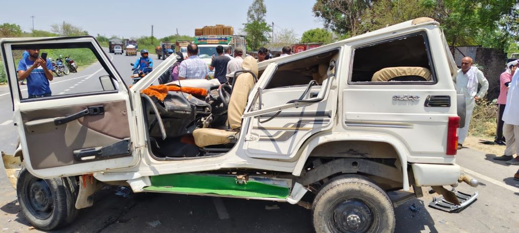 बूंदी – नैनवां क्षेत्र में हाईवे 148 डी पर दोपहर बारह बजे एक भीषण सड़क हादसा हो गया। नैनवां क्षेत्र के स्थित केवट नगर में एक बोलेरो व पिकअप में आमने-सामने की भिड़ंत हुई। टक्कर इतनी जबरदस्त थी कि बोलेरो के परखच्चे उड़ गए हादसे की सूचना मिलते ही नैनवां थाना पुलिस डीएसपी राजु लाल मीणा थानाधिकारी कमलेश कुमार शर्मा व एसडीओ प्रीति मीणा मौके पर पहुंची व स्थानीय लोगों की मदद से बोलेरो में फंसे हुए घायलों को प्राथमिक उपचार के लिए नैनवां अस्पताल पहुंचाया। जिसमें दो महिलाओं शरमा व जसोदा को मृत घोषित कर दिया व बाकी दुल्हा व दुल्हन सहित अन्य पांच घायलों को जिला अस्पताल दो एंबुलेंस के माध्यम से रेफर कर दिया। पुलिस ने परिजनों को सूचना दी परिजन नैनवां अस्पताल पहुंचने पर पुलिस दोनों मृतका के शवों का पोस्टमार्टम करवाकर शव परिजनों को सुपुर्द कर दिए । दुल्हे के चाचा राधेश्याम ने पुलिस को दी रिपोर्ट में बताया कि मेरे भतीजे मुकेश की शादी अभी आठ दिन पहले ही हुई थी आज बरवाड़ा चौथ माता को ढोक लगवाने जा रहे थे। की केवट नगर के पास अचानक हादसे की सूचना ने शादी की खुशियों का रंग फीका कर दिया।दुल्हा-दुल्हन सहित यह हुए हैं घायल -मुकेश सरोज रमेश सुरेश व शोजीलाल को किया गया रेफर।रोड़वेज चालक ने पुलिस को बताया कि रोजाना की तरह आज भी में नैनवां बस स्टैंड से बारह बजे रवाना होकर केवट नगर के पास सवारियां चढ़ा रहा था की सवारियां लेकर रवाना ही हुआ था कि पीछे नैनवां की तरफ से आ रही पीकप ने बस से बचने के लिए ओवरटेक किया तो जजावर की तरफ से आ रही बोलेरो ने पीकप को जबरदस्त टक्कर मार दी टक्कर इतनी जबरदस्त थी कि बोलेरो की टक्कर से पीकप बस से आकर साईड में भीड़ गयी जिससे पीकप में सवार दो गायें भी नीचे आ गिरी जिससे गायों के उपर बस चढ़ जाने से दोनों गायों की घटनास्थल पर ही मौत हो गई गायों का मालिक खेम सिंह बंजारा ने बताया कि वह टोंक से आज ही गायें खरीद कर लाया जिसे स्थानीय सोरण ले जा रहा था। अचानक हुए भीषण हादसे ने अस्पताल में भी अफरातफरी मचा दी चिकित्सा प्रशासन भी अलर्ट नजर आया दुल्हा दुल्हन को देखकर हर कोई मदद के लिए आगे आता हुआ नजर आया हादसे को गंभीरता से लेते हुए नैनवां के मीडिया संचार विभाग ने भी गहरी संवेदना जताई है।