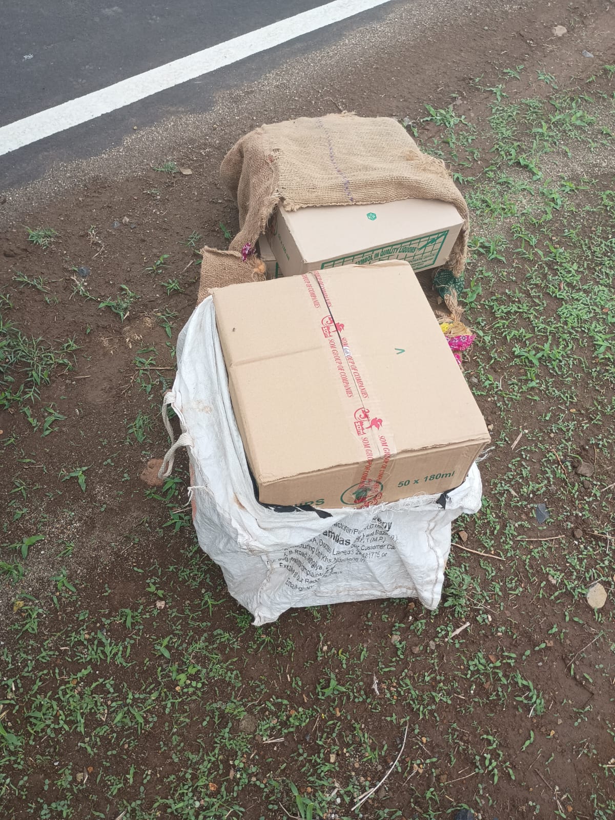 रोड पर पड़े एक बोरे , एक सफेद रंग के झोले को चेक करने पर उसमें 5 पेटियों में अवैध शराब की 250 की क्वाटर लगभग 45 लीटर कीमती लगभग 15000 रुपए की होना पाई गई।अज्ञात आरोपियों के विरुद्ध अपराध कायम कर विवेचना में लिया गया है आरोपियों को तलाश जारी है।