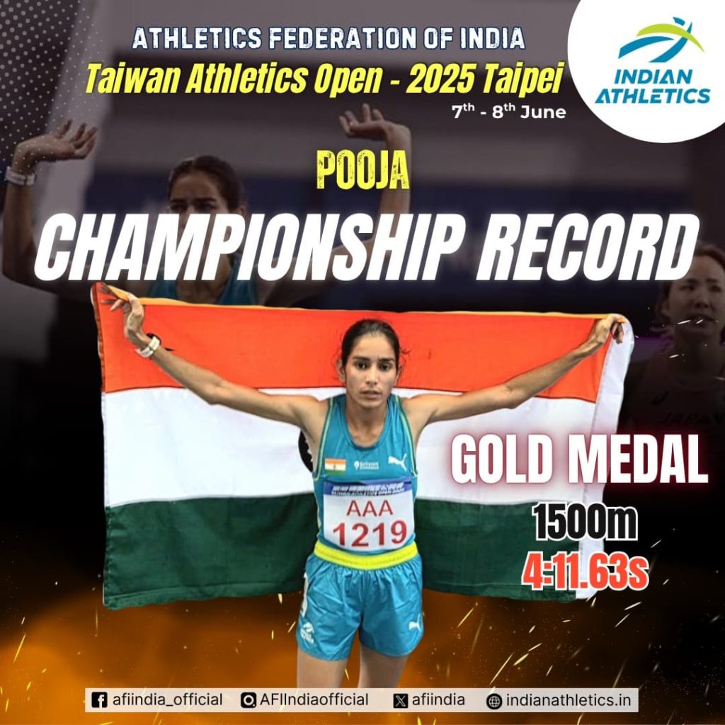 🔹 🥇 2 स्वर्ण पदक – ताइवान ओपन एथलेटिक्स मीट (1500 मीटर एवं 800 मीटर)