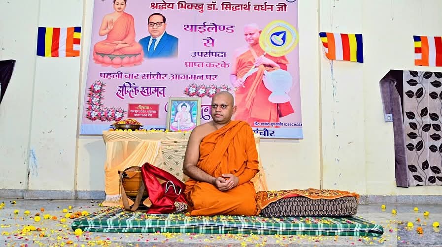 सांचौर, 20 जून 2025 – भारतीय बौद्ध महासभा के तत्वावधान में सांचौर में एक ऐतिहासिक और भावपूर्ण क्षण का साक्षी बना, जब थाईलैंड से उपसंपदा ग्रहण कर पहली बार पधारे भंते डॉ. सिद्धार्थ वर्धन के सम्मान में भव्य स्वागत समारोह का आयोजन किया गया।