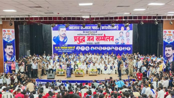 बस्ती। आजाद समाज पार्टी अस्तित्व बचाओ–भाईचारा बनाओ प्रबुद्ध जनसम्मेलन कार्यक्रम मे आजाद समाज पार्टी राष्ट्रीय अध्यक्ष और नगीना से सांसद चंद्रशेखर आज़ाद ‘रावण’ ने रविवार को उत्तर प्रदेश के बस्ती जनपद का दौरा किया। चंद्रशेखर को सुनने और देखने के लिए हजारों की संख्या में लोग जुटे, खासकर युवाओं में भारी उत्साह देखने को मिला। अपने संबोधन में चंद्रशेखर आज़ाद ने ऐलान किया कि उनकी पार्टी आने वाले दिनों में प्रदेश के 18 मंडलों में विशेष कार्यक्रम आयोजित करेगी। यह अभियान त्रिस्तरीय पंचायत चुनाव को ध्यान में रखते हुए पार्टी को जमीनी स्तर पर मजबूत करने की रणनीति का हिस्सा होगा। सांसद चंद्रशेखर ने सरकार पर हमला बोलते हुए कहा कि सरकार पढ़े-लिखे नौजवानों की बेरोजगारी पर बात नहीं करना चाहती। जनता को असली मुद्दों से भटका कर भ्रमित किया जा रहा है।