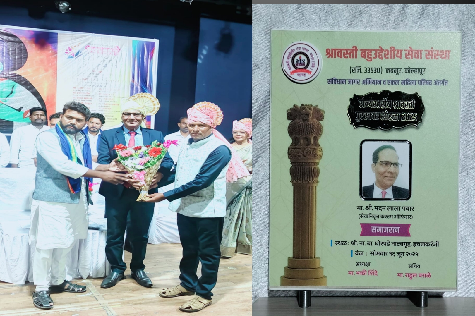 समाज कार्यात मोलाचे योगदानाबद्दल मदन पवार यांना ‘राज्यस्तरीय समाजरत्न पुरस्काराने’ गौरविण्यात आले आहे.