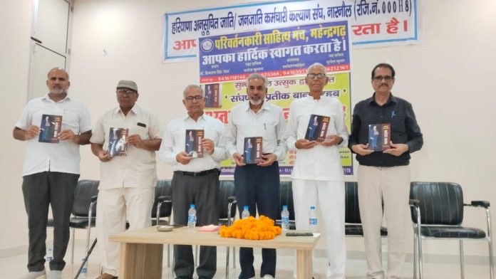 परिवर्तनकारी साहित्य मंच द्वारा रविवार को नारनौल के अंबेडकर भवन में पुस्तक लोकार्पण समारोह का आयोजन किया गया। जिसमें क्षेत्र के जाने- माने कवि सुंदरलाल उत्सुक की नव प्रकाशित कृति ‘संघर्ष के प्रतीक बाबा साहब का विमोचन किया गया। समारोह में मुख्य अतिथि जिला शिक्षा अधिकारी संतोष चौहान रहे जबकि महिला कॉलेज अटेेेली के प्राचार्य डॉ. प्रवीण यादव, प्रखर सामाजिक कार्यकर्ता बीसी गोठवाल, राष्ट्रीय खेल पदक विजेता बाबूलाल चोरेड विशिष्ट अतिथि रहे। मंच के अध्यक्ष डॉ. शिवताज सिंह ताज ने इस पुस्तक की सम्यक समीक्षा प्रस्तुत की। मंच संचालन अंग्रेजी प्रवक्ता रविंद्र सैनी ने किया जबकि मंच के सचिव मनोज बुलाण ने समारोह में पहुंचे सभी अतिथियों का स्वागत किया। इस मौके पर जिला शिक्षा अधिकारी संतोष चौहान ने परिवर्तनकारी साहित्य मंच की गतिविधियों की सराहना करते हुए कवि उत्सुक को उनकी नई कृति के लोकार्पण पर बधाई देते हुए शुभकामनाएं प्रेषित करते हुए कहा कि इस तरह के समारोह निरंतर होते रहने चाहिए जो कि समाज को सही रास्ता दिखाते हैं। बाबा सहाब पर लिखित यह काव्य संग्रह भारत रत्न अंबेडकर के जीवन परिचय के साथ उनके संघर्ष की सच्ची घटना है। विशिष्ट अतिथि डॉ. प्रवीण यादव, बीसी गोठवाल, बाबूलाल चोरेड ने कहा कि कवि सुंदरलाल उत्सुक के लेखन में निरंतरता ही इनका प्रशंसनीय पहलू है जो कि वर्तमान दौर में बहुत कम नजर आती है। इस अवसर पर कवि नेमीचंद शांडिल्य ,सभाचंद दुबलाना, धर्मपाल, सुनील पागल आदि ने समीक्षा की। समारोह के दौरान विभिन्न क्षेत्रों में उल्लेखनीय योगदान देने वाली प्रतिभाओं को भी सम्मानित किया। इस मौके पर प्रधान चंदन सिंह जालवान, मदनलाल डाडैया, प्राचार्य सुनील कुमार, डॉ.रणपाल सिंह, बिशन कुमार, भीम सिंह सूठवाल, सोमदत्त वर्मा, राजहंस शास्त्री, कामरेड सुभाष, शेर सिंह, सतीश प्रवक्ता, मंच के कोषाध्यक्ष रामकिशन मरोडिया, सुनील प्रवक्ता, इंद्राज बीएलओ, अश्विनी बौद्ध, सुमित जिनागल, रिटायर्ड मैनेजर महाबीर सिंह सांभरिया, रामानंद पनवाल सहित अनेक गणमान्य लोग मौजूद रहे। बता दें कि अध्यापक उत्सुक महेंद्रगढ़ जिले के अटेली खंड के गांव गणियार के निवासी है तथा अभी तक सामाजिक, तार्किक, वैज्ञानिक दृष्टिकोण से संबंधित नौ पुस्तके लिख चुके हैं।