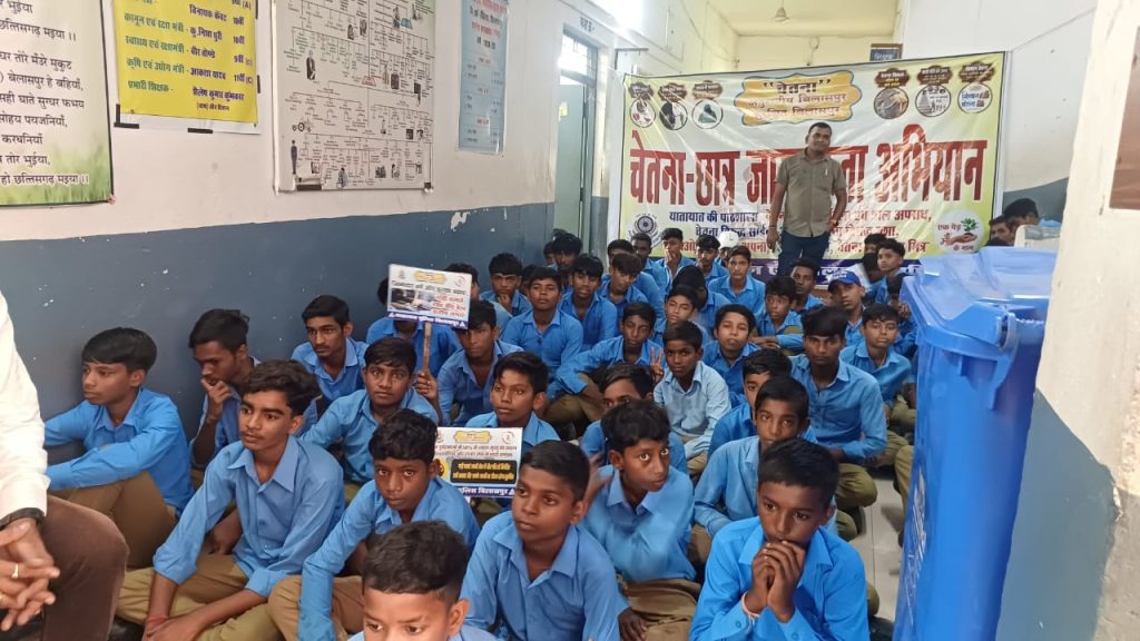 वरिष्ठ पुलिस अधीक्षक रजनेश सिंह दिशा निर्देश में बिलासपुर पुलिस के द्वारा चलाए जा रहे “चेतना अभियान” के तहत नियमित रूप से चलाए जा रहे जागरूकता कार्यक्रम के विभिन्न चरणों का विस्तार करते हुए वृहद रुप में सभी जागरूकता कार्यक्रमो का समन्वित द्वितीय चरण का आज जिला एवं पुलिस प्रशासन के संयुक्त तत्वाधान में “चेतना- छात्र जागरूकता अभियान” स्वामी आत्मानंद”शासकीय हायर सेकंडरी स्कूल मोपका बिलासपुर” में किया गया।