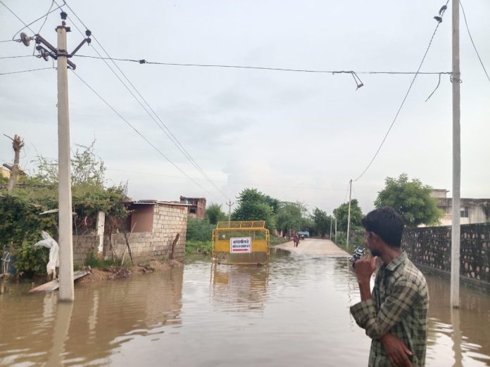 जय स्थल में जल भराव से पानी की निकासी नहीं , लोग मकान छोड़कर अन्य जगहों पर जाने को मजबूर