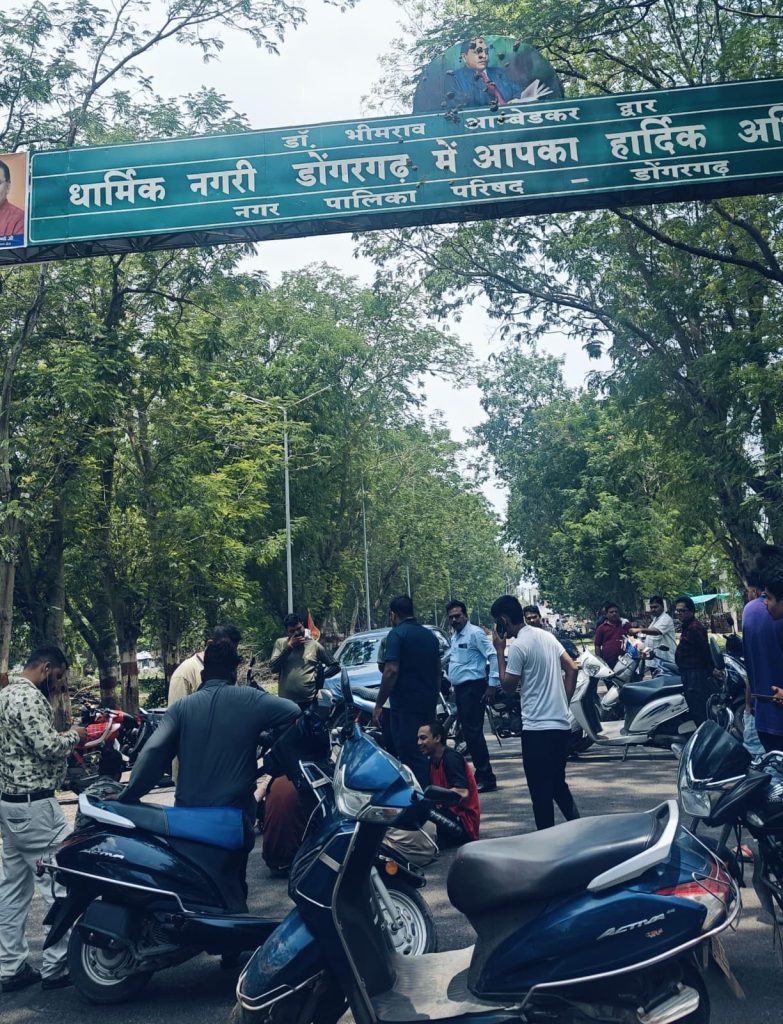 आपको बताते चले की आंबेडकर अनुवाइयों के द्वारा जैसे ही जानकारी हुई की प्रवेश द्वार में लगे छायाचित्र को असामाजिक तत्वों के द्वारा बाबा साहब चित्र दूषित किया गया है।डोंगरगढ़ का पूरा आमजन आक्रोषिक होकर प्रवेश द्वार पर इकट्ठा हो गया इस पर पुलिस ने भी मोर्चा संभाला तथा नगर पालिका अध्यक्ष रमन डोगरे ने शीघ्र ही प्रवेश द्वार को साफ करवाया।