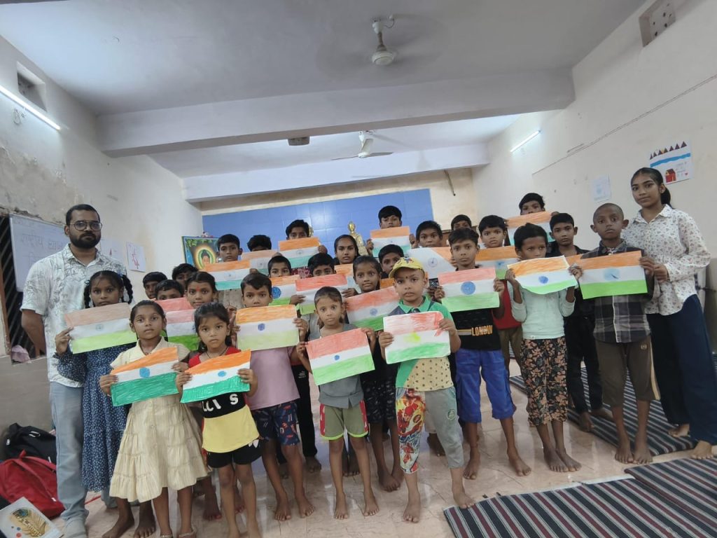 बिलासपुर। 22 जुलाई को राष्ट्रीय ध्वज दिवस के अवसर पर फूले निःशुल्क पाठशाला में एक विशेष कार्यक्रम का आयोजन किया गया। आमतौर पर हर बुधवार को पाठशाला में विभिन्न रचनात्मक गतिविधियाँ और खेल आयोजित किए जाते हैं, लेकिन ध्वज दिवस का महत्व विशेष और ऐतिहासिक होने के कारण, इस सप्ताह की गतिविधि को मंगलवार को ही सम्पन्न किया गया।