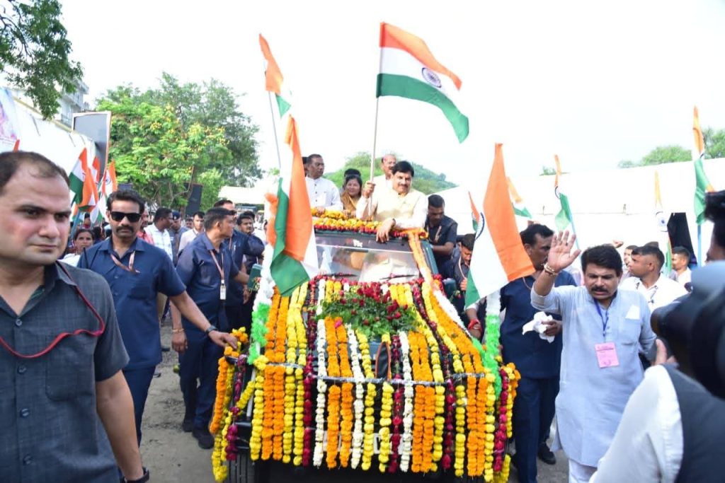 मुख्यमंत्री डॉ. मोहन यादव ने गुरूवार को प्रधानमंत्री कॉलेज ऑफ एक्सीलेंस रानी दुर्गावती महाविद्यालय परिसर में आयोजित हलधर महोत्सव में कृषि एवं संबद्ध विभागों द्वारा लगाई गई प्रदर्शनी का अवलोकन किया। मुख्यमंत्री डॉ. यादव खुली जिप्सी में आकर निकाली गई तिरंगा यात्रा में शामिल हुए। यात्रा में स्काऊट एवं गाईड कैडेट ने पुष्पवर्षा करते हुए भारत माता की जय के नारे लगाए।