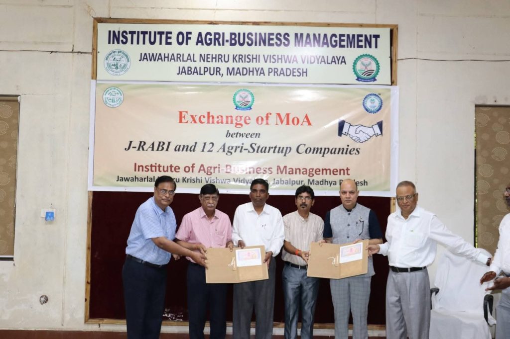 विगत दिनों जबलपुर में आयोजित एक समारोह में मुख्य अतिथि डॉ. मनदीप शर्मा, कुलगुरु, नानाजी देशमुख वेटनरी साइंस यूनिवर्सिटी जबलपुर और जवाहर लाल नेहरू कृषि विश्वविद्यालय के कुलगुरू प्रो. पी.के. मिश्रा, जवाहर आर-एबीआई के सीईओ डॉ. मोनी थॉमस और जवाहर लाल नेहरू कृषि विश्वविद्यालय के विभिन्न विभागों के डीन और एग्री स्टार्टअप पूरा सोशल साल्यूशंस के डायरेक्टर गजेन्द्र गुप्ता और सहयोगी सदस्य विनोद शर्मा ने एमओए का एक्सचेंज किया।