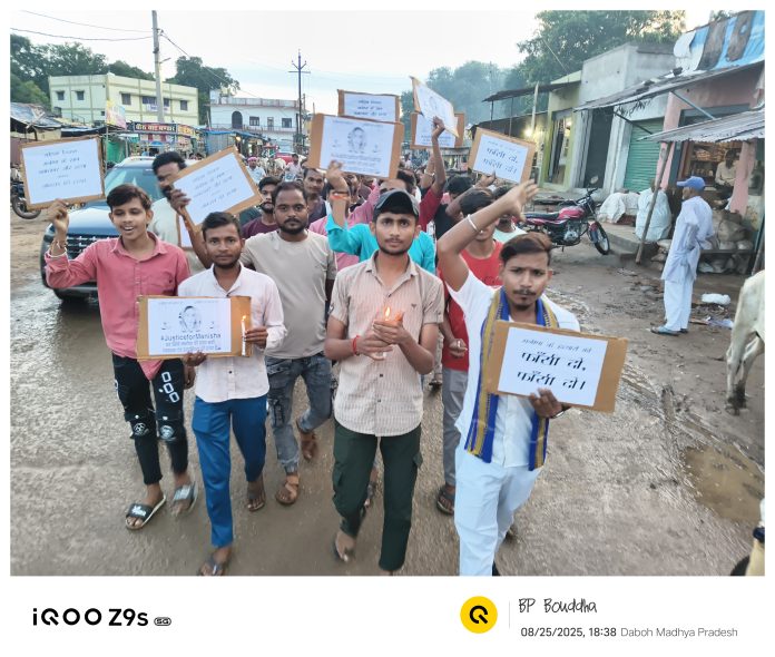 दबोह, 25 अगस्त/मूकनायक । हरियाणा में महिला शिक्षक मनीषा की निर्मम हत्या और रेप की घटना को लेकर दबोह में आक्रोश फूट पड़ा। रविवार शाम समाजसेवियों और युवाओं ने कैंडल मार्च निकालकर केंद्र और राज्य सरकार से मांग की कि आरोपियों को जल्द से जल्द फांसी दी जाए।