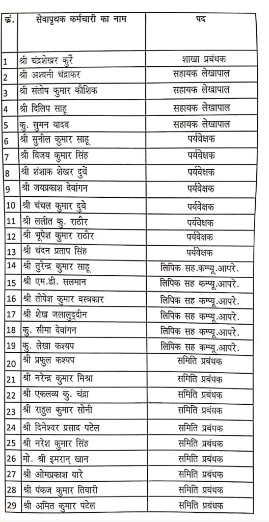 बिलासपुर। जिला सहकारी केंद्रीय बैंक बिलासपुर में हुई स्टाफ कमेटी की बैठक में दूषित प्रक्रिया में भर्ती हुए 29 अभ्यर्थीयो को पुनः बर्खास्त कर दिया गया है।