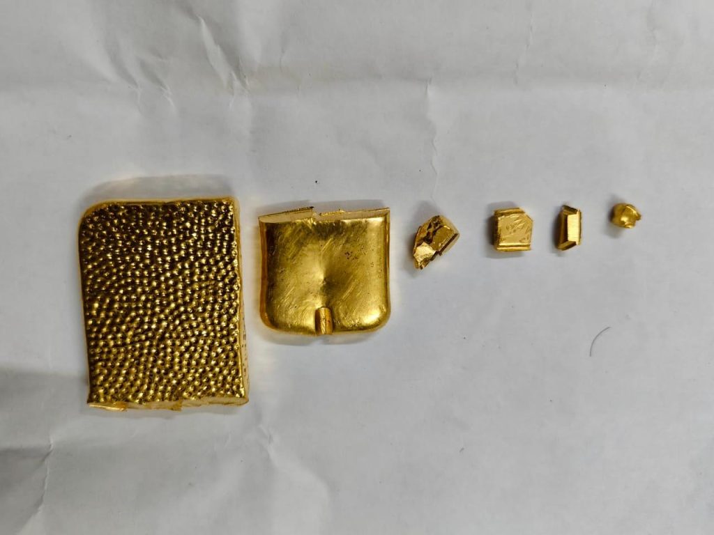 बिलासपुर। दिनाँक 18 अगस्त, 2025 को हावडा से सोने की चोरी के आरोपी के गाड़ी12834 अहमदाबाद एक्सप्रेस में यात्रा किये जाने की सूचना सुरक्षा नियंत्रण कक्ष, नागपुर के माध्यम से प्राप्त होने पर रेल सुरक्षा बल, गोंदिया, CIB गोंदिया, मंडल टास्क टीम गोंदिया के अधिकारी एवं बल सदस्यों द्वारा उक्त गाडी को गोंदिया रेलवे स्टेशन में समय 20.33 बजे चेक करने पर गाड़ी के कोच संख्या बी-7 में यात्रा कर रहे संदिग्ध ब्यक्ति से पुछताछ करने पर उसने अपना नाम- अतुल जाधव, उम्र-24 वर्ष, हावडा से नागपुर तक सफर करना बताया और बताया कि वह नैहाटी (हावडा) में सोने की कारीगिरी का कार्य करता है तथा सोने के संबंध में पुछताछ करने पर उसने उपरोक्त चोरित सोना जैसा दिखने वाली पीली रंग की धातु लेकर यात्रा करना बताया। उक्त बरामद धातु एवं आरोपी को बल अभिरक्षा में लेकर रेल सुरक्षा बल गोंदिया लाया गया एवं स्थानीय पुलिस थाना- नैहटी, जिला- चैबीसपरगना (पश्चिम बंगाल) को सूचित किया गया I बरामद धातु का स्थानीय ज्वेलर्स, गोंदिया से परिक्षण कराया गया, जिन्होने धातु की परख कर सोना होना प्रमाणित किया तथा कुल वजन 275.930 ग्राम, कींमत रू. 27,50,000/- बताया। उपरोक्त आरोपी को बरामद संपत्ति के साथ अग्रिम कार्यवाही हेतु स्थानीय पुलिस थाना- नैहटी, जिला- चैबीसपरगना (पश्चिम बंगाल) को सुपूर्द किया गया I जाँच अधिकारी द्वारा मौके कार्यवाही में आरोपी अतुल जाधव, उम्र-24 वर्ष को मामलें में संलिप्त पाकर मौके पर गिरफ्तार कर एफआईआर, दिनांक 17 अगस्त, 2025 मामलें 275.93 ग्राम गोल्ड (कीमत 27,50,000/-) में संलग्न किया I