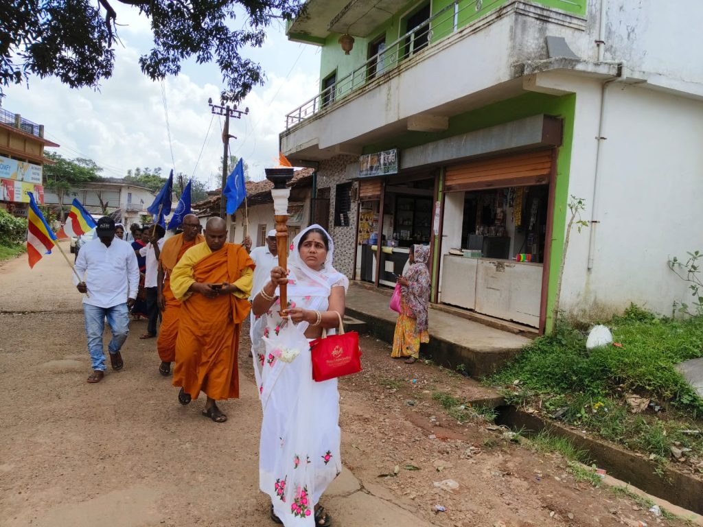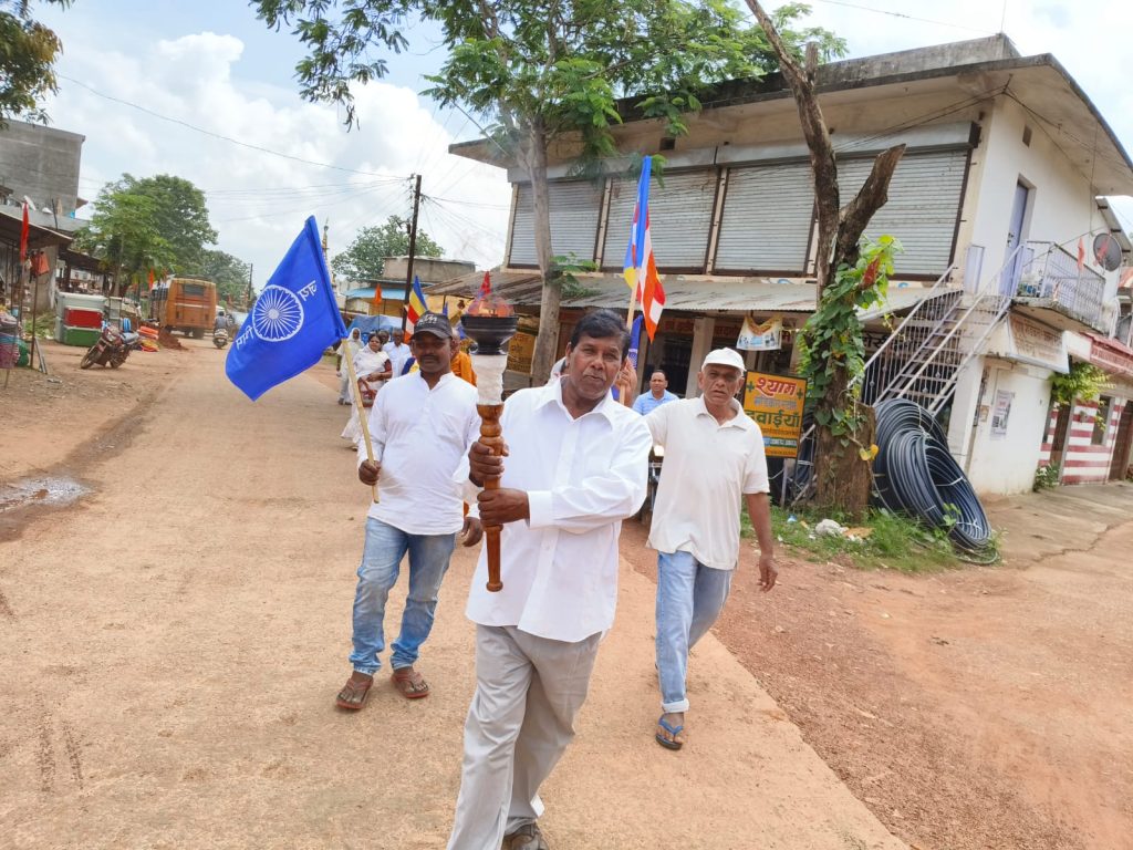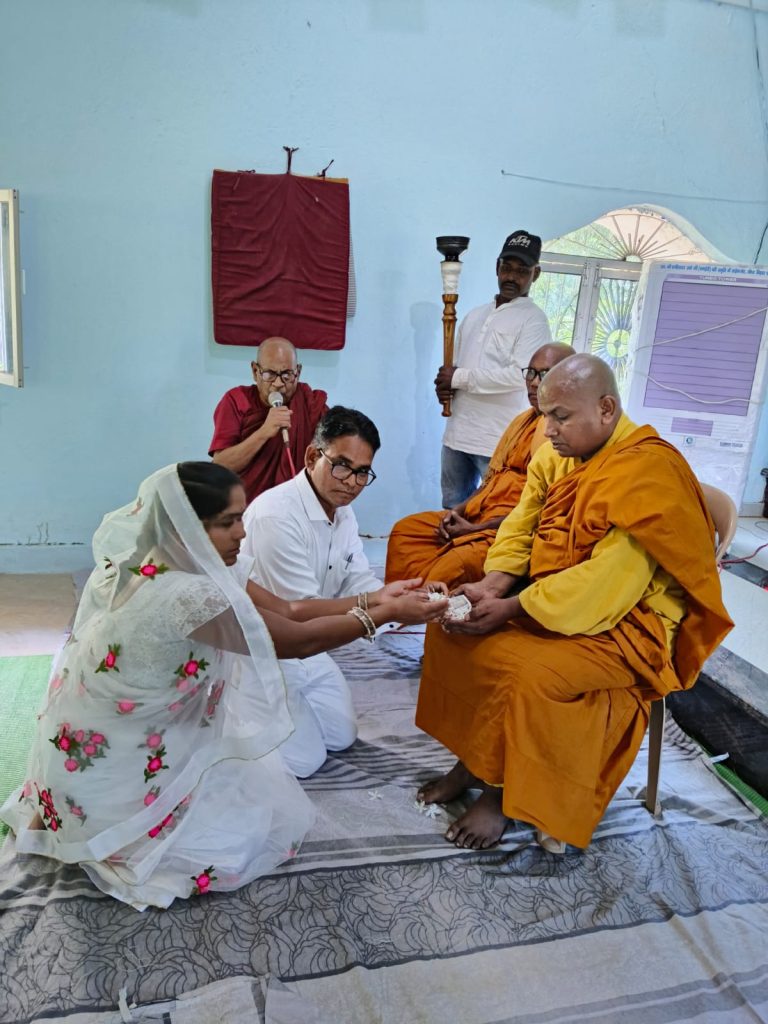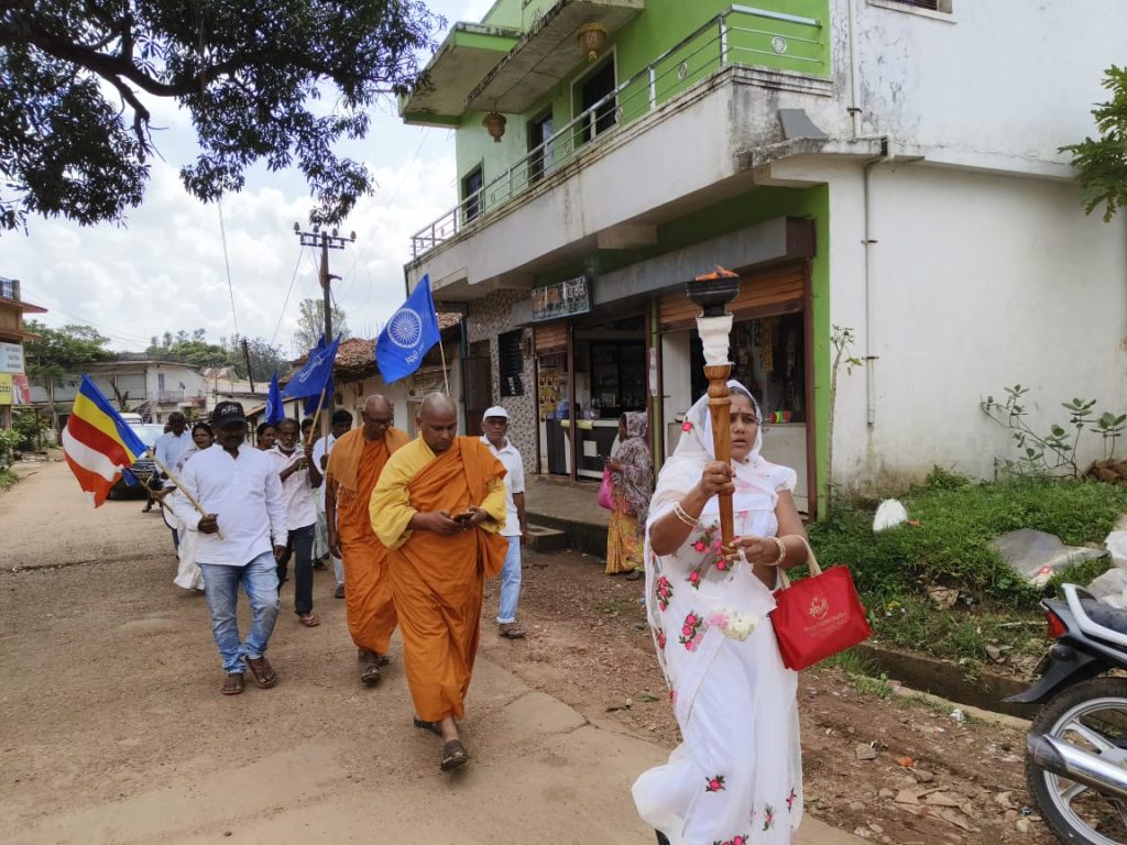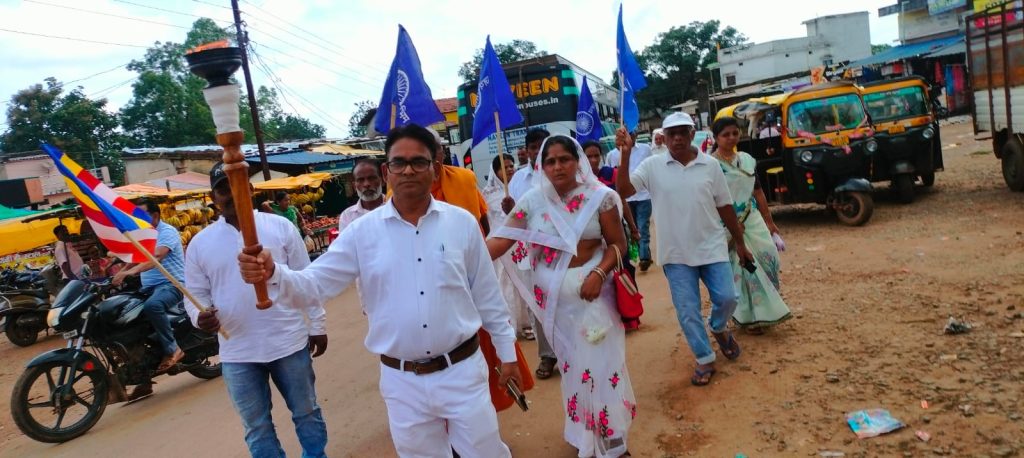 दमोह (बालाघाट) आज दिनांक 6सितम्बर 2025को पूज्य भंदन्त धम्मशिखर जी के नेतृत्व में बिहार स्थित महाबोधि महाविहार बोधगया को गैर बुद्धिस्ट से मुक्ति दिलाने को लेकर गत 20 अगस्त 2025 से डॉ. बाबा साहब अम्बेडकर की जन्मस्थली महू से शुरू हुई विशाल धम्म शांति मशाल यात्रा का आगमन आज तहसील बिरसा के अन्तर्गत ग्राम दमोह स्थित प्रज्ञादीप बुध्द विहार दमोह में आगमन हुआ ।जहां बुद्धिष्ट ग्रामवासियों द्वारा गर्मजोशी से स्वागत कर ग्राम में शांति मशाल रैली निकाली गई, जो लालचौक, बस स्टैंड , हास्पिटल होते हुए प्रज्ञादीप बुध्द विहार में बाबा साहब प्रतिमा में माल्यार्पण कर विहार में पूजा वंदना कर बोधगया महाबोधि महाविहार को मुक्त कराने का संकल्प लेकर भिक्षु संघ द्वारा किये जा रहे आंदोलन को तन मन धन से सहयोग कर सफल बनाने का आव्हान किया गया। इस अवसर पर भिक्खु संघ के सभी पूज्य भंते जी ने अपने विचारों द्वारा सभी के कल्याण की मंगलमैत्री करते हुए बुद्ध की शांति और करुणा से महाविहार के मुक्ति के लिए क्षेत्रीय धर्मालंबियों को प्रोत्साहित किया।