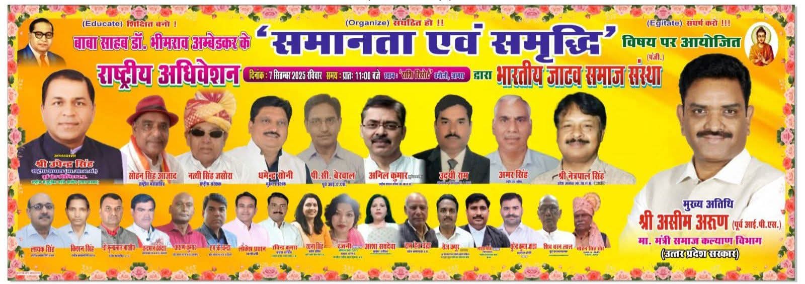 भारतीय जाटव समाज संस्था (सामाजिक एवं सांस्कृतिक पंजीकृत) के तत्वावधान में “समानता और समृद्धि” विषयक राष्ट्रीय अधिवेशन का आयोजन कल रविवार को आगरा में किया जा रहा है। यह महत्वपूर्ण आयोजन राशि रिज़ॉर्ट, नगला शंकर लाल, धनौली, आगरा में प्रातः 12 बजे से आरंभ होगा।