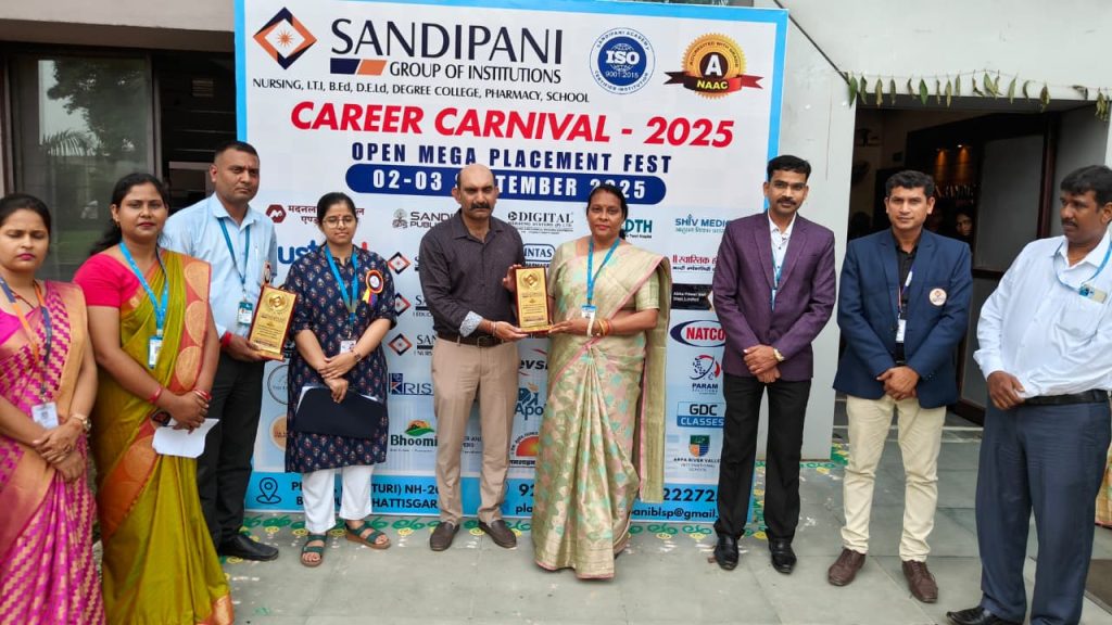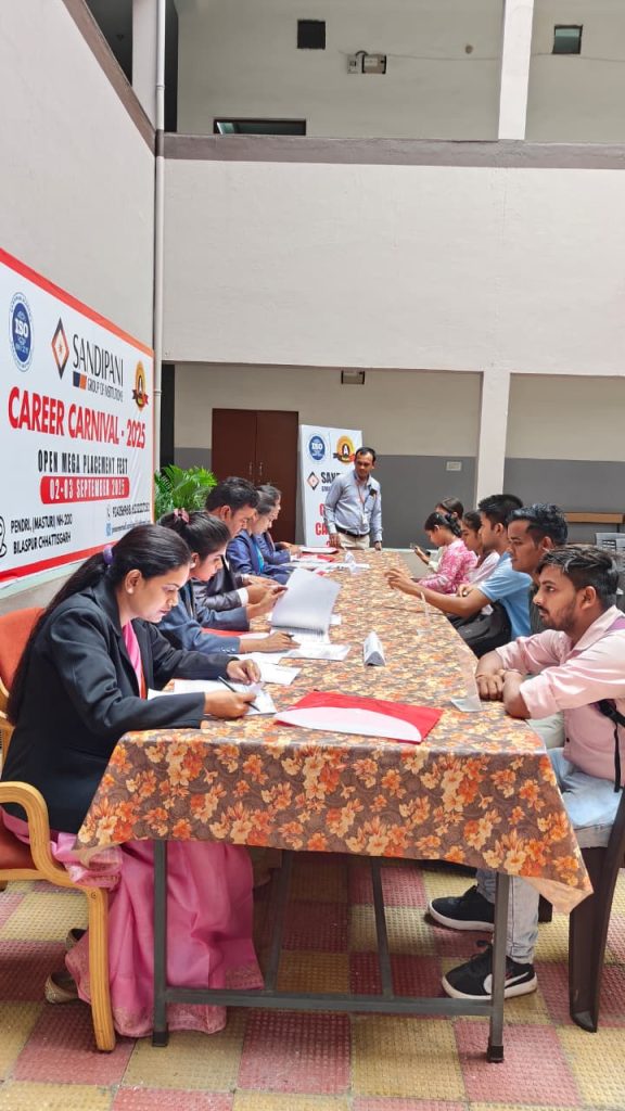 सांदीपनी ग्रुप ऑफ इंस्टि ट्यूशन पेंड्री मस्तुरी बिलासपुर छत्तीसगढ़ द्वारा करियर कार्निवल 2025 दो दिवसीय ओपन मेगा प्लेसमेंट फेस्ट के प्रथम दिवस में 350 से अधिक युवाओं ने रजिस्ट्रेशन कराया है जिसमें 150 से अधिक नियुक्तियां दी गई। सांदीपनी ग्रुप ऑफ इंस्टिट्यूशन के कैरियर कार्निवल 2025 के प्रथम दिवस में बेरोजगार व अनुभवी युवाओं ने बढ़ चढ़कर भाग लिया जिसकी व्यवस्था सांदीपनी ग्रुप ऑफ इंस्टिट्यूशन द्वारा पूर्व में ही कर ली गई थी। ओपन मेगा प्लेसमेंट फेस्ट के प्रथम चरण में नाम एंट्री करने पर कूपन नंबर दिया जा रहा था द्वितीय चरण में कूपन नंबर प्राप्त होने पर हेल्पिंग डेस्क द्वारा दस्तावेजों का निरीक्षण व नियुक्ता कक्ष बताने के पश्चात तृतीय चरण में नियुक्ति देने वाले एंपलॉयर के पास प्रतिभागियों को भेजा जा रहा था। उपरोक्त व्यवस्था महाविद्यालय के तीन अलग अलग भवनो नर्सिंग एजुकेशन एवं फार्मेसी में की गई थी।