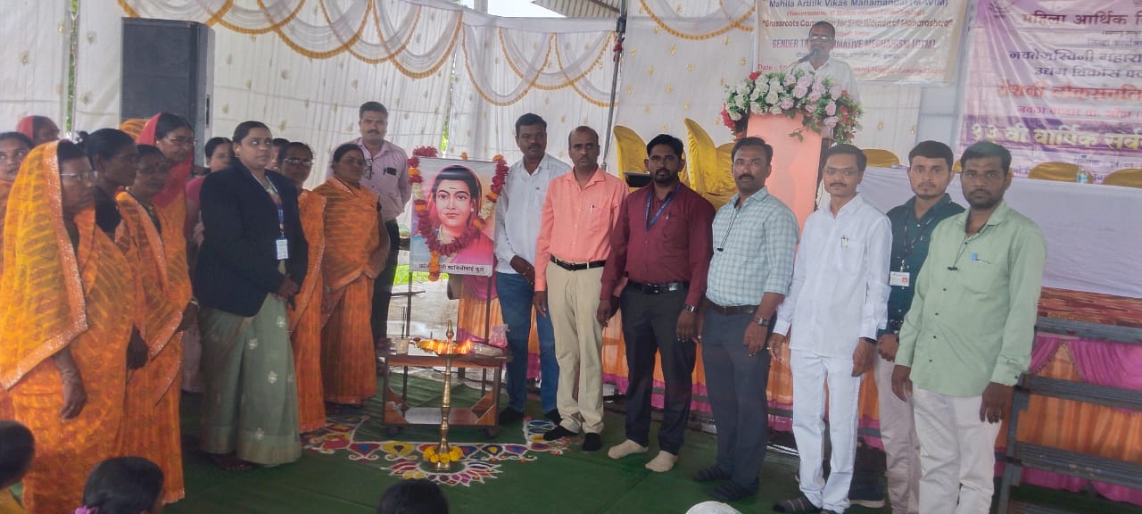 जवळा बाजार : रोशनी लोकसंचालित साधन केंद्र जी 13 वी वार्षिक सर्वसाधारण सभा साई नगर,साई मंदिर सभागृह जवळा बाजार येथे मोठ्या उत्साहात घेण्यात आली या वार्षिक सर्वसाधारण सभे करिता उद्घाटक म्हणून आयसीआयसीआय बँकेचे व्यवस्थापक आदरणीय आणि इंगोले सर लाभले त्याचबरोबर प्रमुख मार्गदर्शक म्हणून आदरणीय बाळासाहेब झिंजाडे जिल्हा समन्वय अधिकारी हिंगोली हे होते तसेच प्रमुख अतिथी म्हणून एचडीएफसी बँकेचे नयुम शेख ,पाईकराव सर जवळा बाजार चे सामाजिक कार्यकर्ते आदरणीय आदित्य भैया आहेर उपजीविका सल्लागार आदरणीय गजानन खीरोडकर सर, गोविंद कदम आयसीआयसीआय बँक तसेच आर सिटी च्या फॅकल्टी आदरणीय संगीता मुळे मॅडम हे प्रमुख अतिथी म्हणून उपस्थित होते या वार्षिक सर्वसाधारण सभेकरिता सीएमआरसी अंतर्गत असलेल्या गटातील एकूण 1042 महिला उपस्थित होत्या कार्यक्रमाची सुरुवात क्रांतीज्योती सावित्रीबाई फुले यांच्या प्रतिमा पूजनाने झाली संस्थेच्या अध्यक्षा सुनीताताई शेळके यांनी सर्वप्रथम आपले मनोगत व्यक्त केले यानंतर सीएमआरसी चे व्यवस्थापक श्री संकेत दोडल यांनी प्रास्ताविक केले संस्थेचे लेखापाल तौफिक शेख यांनी मागील वर्षाचे ऑडिटचे वाचन केले तसेच सर्व मान्यवरांच्या हस्ते क्षितिजझेप या वार्षिक अहवालाचे विमोचन करण्यात आले सदर कार्यक्रमात मागील वर्षी मागील वर्षी जास्त कर्ज मिळालेल्या गटांना प्रमाणपत्र देऊन त्यांचा सत्कार करण्यात आला त्याचबरोबर जी टी एम अंतर्गत शासनाच्या विविध योजना महिलांना सांगण्यात आल्या कार्यक्षेत्रातील व्यवसाय करणाऱ्या महिला तसेच व्यवसाय करणाऱ्या गटांचा या ठिकाणी मान्यवरांच्या हस्ते सत्कार करण्यात आला .