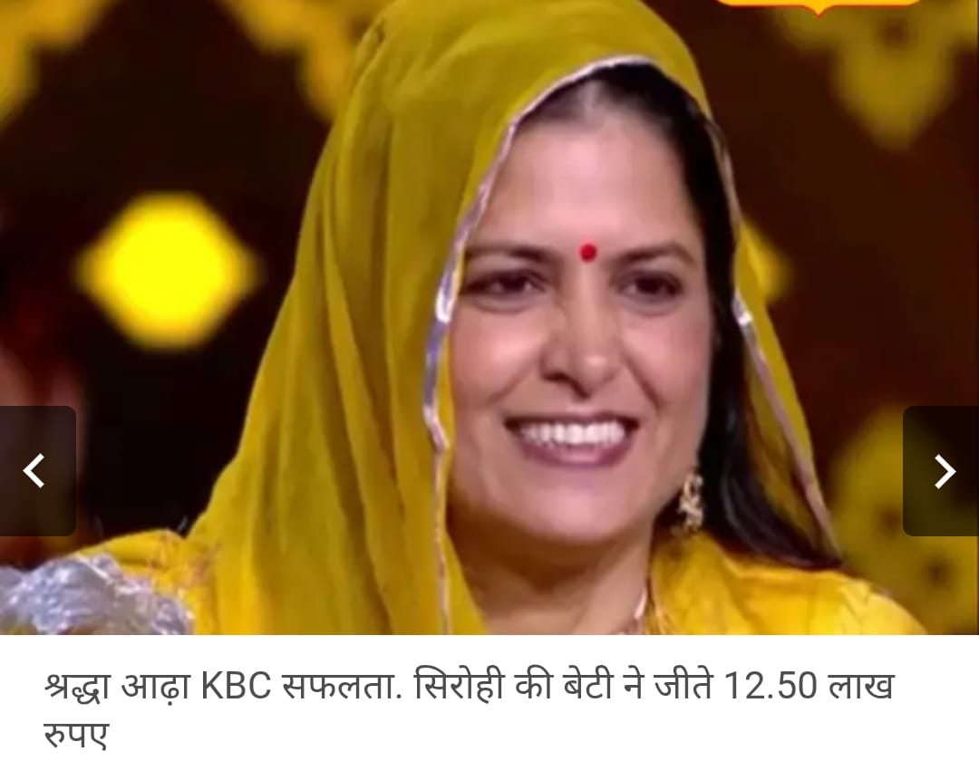 राजस्थान का सीमावर्ती जिला सिरोही इन दिनों पेशुआ गांव की बेटी श्रद्धा आढ़ा के कारण पूरे देश में चर्चा का विषय बना हुआ है. श्रद्धा ने प्रसिद्ध टेलीविजन शो कौन बनेगा करोड़पति (KBC) सीजन 17 में अपने ज्ञान और आत्मविश्वास का शानदार प्रदर्शन करते हुए 12 लाख 50 हजार रुपए की इनामी राशि जीती. इस बड़ी उपलब्धि के बाद उनके गांव, परिवार और पूरे जिले में खुशी की लहर दौड़ गई है।