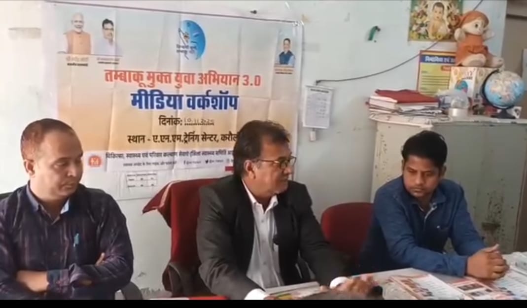 करौली। टोबेको फ्री यूथ कैम्पेन 3.0 के अंतर्गत मीडिया वर्कशाप का आयोजन एएनएम ट्रेनिंग सेंटर में किया गया वर्कशॉप को संबोधित करते हुए सीएमएचओ डॉ जयंतीलाल मीना ने कहा कि देश-प्रदेश में यह कैंपेन चलाया जा रहा है जिसका उद्देश्य आमजन को तंबाकू और तंबाकू उत्पादों के दुष्प्रभावों के प्रति जागरूक करना है। उन्होंने कहा कि आज युवा वर्ग पर तंबाकू की गिरफ्त बढती जा रही है और युवा वर्ग तंबाकू उत्पादों के सेवन से अछूता नही है जिसका स्वास्थ्य पर वितरित प्रभाव हम सब देख सकते है। उन्होंने बताया कि सरकारें तंबाकू के दुष्प्रभावों की जागरूकता के लिए विभिन्न जागरूकता कार्यक्रम आयोजित कर रही है इसी के तहत टोबेको फ्री यूथ कैम्पेन 3.0 का संचालन किया जा रहा है जो 8 दिसम्बर तक आयोजित होगा। कैम्पेन के अंतर्गत भारत सरकार के द्वारा 6 प्रमुख रणनीतियां तय की गई जिन पर 60 दिवसीय कार्य योजना में कार्य किया जावेगा तम्बाकू उत्पादों के दुष्प्रभावों के संबंध में जन-जागरूकता तम्बाकू मुक्त शिक्षण संस्थान गाइडलाइन की पालना,तम्बाकू मुक्त ग्राम,सिगरेट एवं अन्य तम्बाकू उत्पाद अधिनियम, 2003 तथा इलेक्ट्रॉनिक सिगरेट प्रतिबंध अधिनियम 2019 के प्रावधानों के अंतर्गत एनफॉर्समेन्ट कार्यवाही ,सोशल मीडिया प्लेटफॉर्मस् जन-जागरूकता तथा तम्बाकू मुक्ति उपचार एवं परामर्श एवं एन्फोमेन्ट इत्यादि के संबंध में प्रशिक्षण कार्यक्रमों का आयोजन किया जा रहा है। उन्होंने करौली को तंबाकू मुक्त बनाने के लिए मीडिया के सहयोग की अपेक्षा जताते हुए कहा कि हम जागरूकता के प्रयास कर रहे हैं आप तंबाकू के दुष्प्रभावों से आमजन को अवगत करावें ।उन्होने बताया कि अभियान के अंतर्गत जिला स्तरीय अधिकारियों को कार्यालयों का तंबाकू मुक्त बनाने के लिए सेन्सेटाईज किया गया है, ग्राम पंचायतों को तंबाकू मुक्त बनाने के लिए ग्राम सभा मेंप्रस्ताव लिये जा रहे है। स्कूल प्रोग्राम में माध्यम से तंबाकू मुक्त विद्यालय में 9 इंटीकेटर पर कार्य किया जा रहा है।चिकित्सा संस्थाओं, आंगनबाडी केन्द्रो, वीएचएसएनसी कमेटी और महिला आरोग्य समिति पर तंबाकू सेवन न करने की शपथ का आयोजन एवं चालान प्रक्रिया की जा रही है। इस दौरान डिप्टी सीएमएचओ हेल्थ डॉ. ओम प्रकाश महावर, सहायक निदेशक सूचना जनसंपर्क धर्मेंद्र कुमार मीणा, डीपीओ द्वितीय मुकेश कुमार गुप्ता, डीपीसी- आईईसी लखन सिंह लोधा, डीसी बालकृष्ण बंसल और मीडिया कर्मी मौजूद रहे