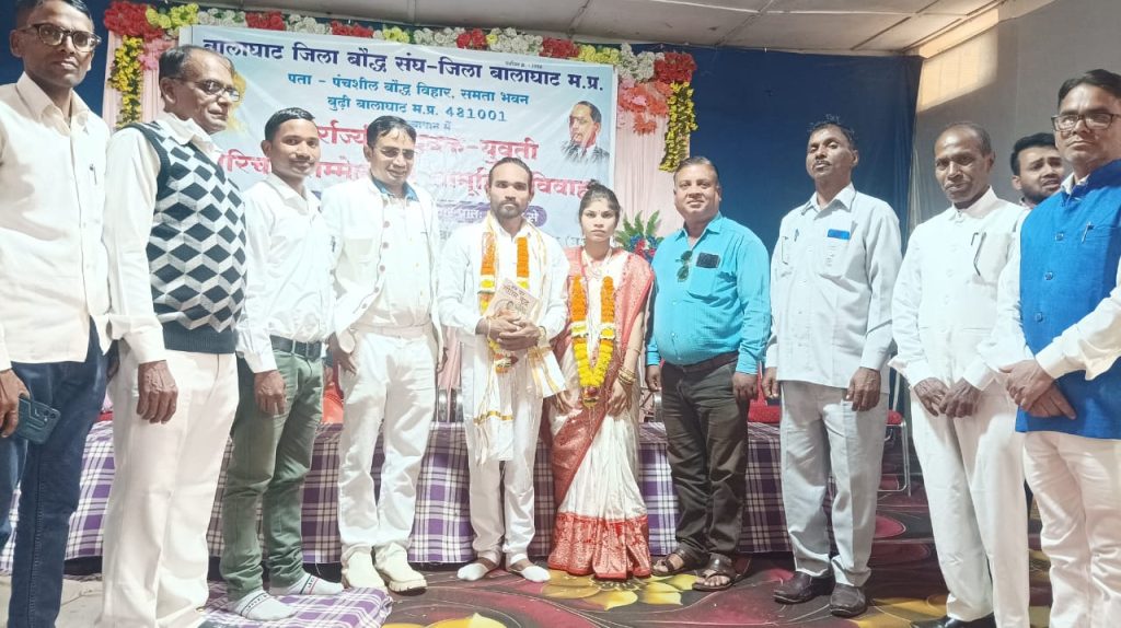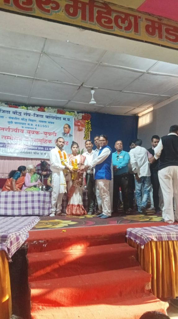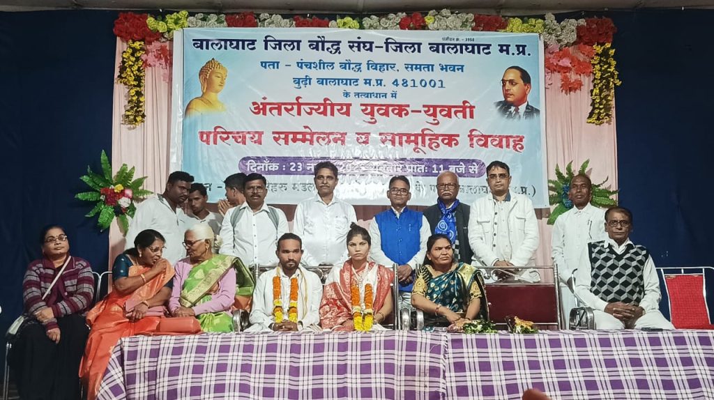 दमोह (बालाघाट) बालाघाट जिला बौद्ध संघ के तत्वाधान में गत दिवस कमला नेहरू महिला मण्डल बालाघाट में अंतर्राज्यीय युवक-युवती परिचय सम्मेलन एवं सामूहिक विवाह कार्यक्रम
