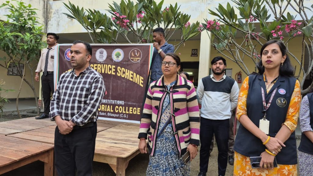 उषा देवी मेमोरियल कॉलेज, सकरी की राष्ट्रीय सेवा योजना (NSS) इकाई द्वारा आज संविधान दिवस के उपलक्ष्य में टैगोर ग्रुप ऑफ़ इंस्टिट्यूशन में एक गरिमामय कार्यक्रम का आयोजन किया गया। कार्यक्रम के तहत महाविद्यालय के प्राचार्य डॉ. सुलक्षना वासनिक, डॉ. मोहम्मद अख्तर रसूल (प्राचार्य, फार्मेसी )तथा कार्यक्रम अधिकारी के मार्गदर्शन में समस्त प्राध्यापकगणों, कर्मचारीगणों एवं विद्यार्थियों को संविधान की उद्देशिका (Preamble) की सामूहिक शपथ दिलाई गई।