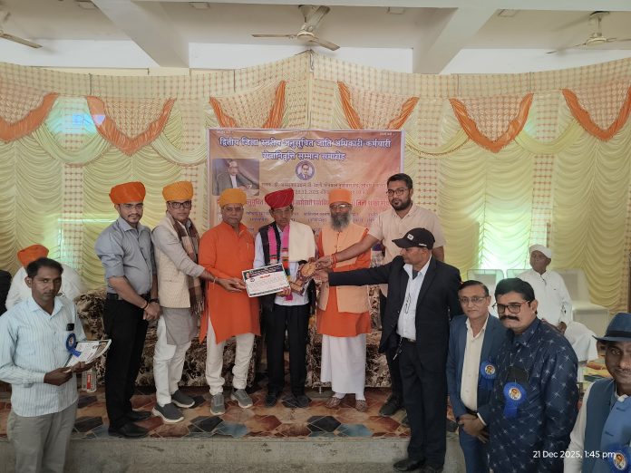 सांचौर – उपखण्ड मुख्यालय स्थित डॉ अम्बेडकर उद्यान में डॉ अम्बेडकर अनुसूचित जाति अधिकारी कर्मचारी एसोसिएशन (अजाक) जिला शाखा सांचौर की ओर से द्वितीय जिला स्तरीय अनुसूचित जाति अधिकारी–कर्मचारी सेवानिवृति सम्मान समारोह का भव्य आयोजन किया गया। समारोह में बड़ी संख्या में अधिकारी एवं कर्मचारी उपस्थित रहे।