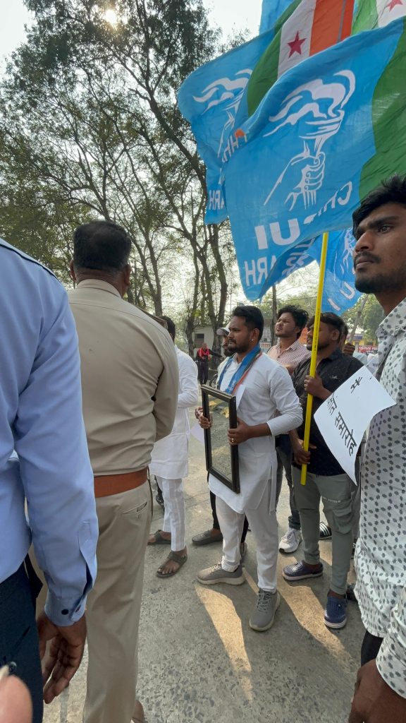 बिलासपुर। अटल बिहारी वाजपेयी विश्वविद्यालय में व्याप्त अनियमितताओं, छात्रों से हो रहे आर्थिक दोहन और दीक्षांत समारोह जैसी औपचारिकताओं के नाम पर लाखों–करोड़ों रुपये के दुरुपयोग के खिलाफ एनएसयूआई ने जोरदार विरोध प्रदर्शन किया। यह विरोध रंजेश सिंह, एनएसयूआई प्रदेश सचिव के नेतृत्व में नुक्कड़ सभा और बाजे–गाजे के साथ आयोजित किया गया, जिसका उद्देश्य गूंगी–भैरी बनी यूनिवर्सिटी प्रबंधन और उच्च शिक्षा विभाग को सच का आईना दिखाना था।