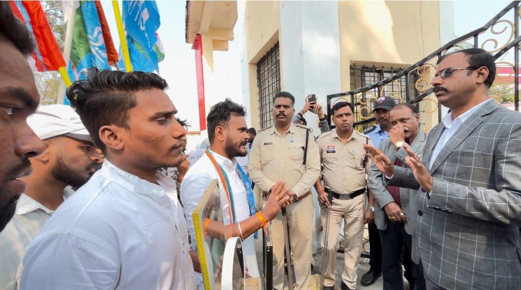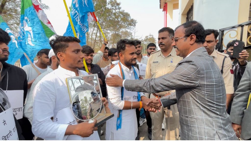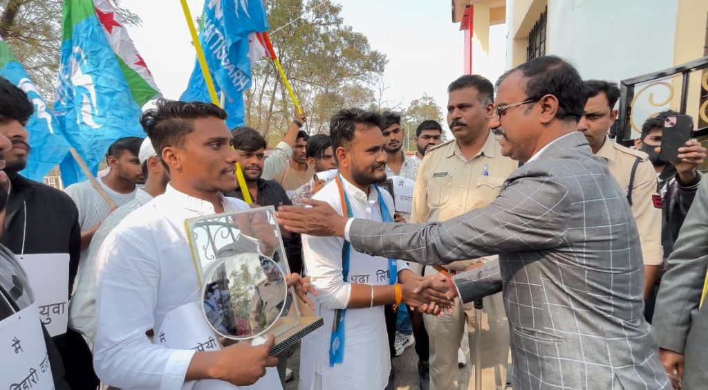ज्ञापन सौपते हुऐ रंजेश सिंह प्रदेश सचिव एनएसयूआई,पुष्पराज साहू, करन यादव, राजा खान, ओमप्रकाश बंजारे, पंकज सोनवानी, विशु साहू, अंशु गोस्वामी, हरदेव साहू, सुदामा साहू, गौकरण, भूमिकाराज, अक्षय त्रिपाठी, सुमित कुमार., शशांक भार्गव , अभिजीत साहू, अंशु समेत सैकड़ो छात्रनेता व छात्र मौजूद रहें।