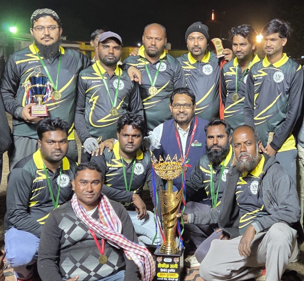 विजेता टीम को आयोजन समिति द्वारा ट्रॉफी एवं 17001/- का नगद पुरस्कार भेंट कर सम्मानित किया गया! फाइनल मैच मे विजेता टीम के मैंन आफ दि सिरीज रहे सैय्यद युनूस रज़ा ने शानदार प्रदर्शन कर टीम को जीत हासिल कराने में अहम भूमिका निभाई, वही मैंन आफ दि मैच अनीश अली रहें!