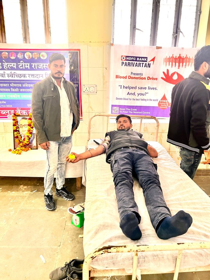 भारत रत्न बाबा साहेब डॉ. भीमराव अंबेडकर जी के परिनिर्वाण दिवस के अवसर पर ब्लड हेल्प टीम भरतपुर, राजस्थान की रूदावल शाखा के तत्वावधान में शनिवार को छठवाँ स्वैच्छिक रक्तदान शिविर भव्य रूप से आयोजित किया गया शिविर के संयोजक मुकेश कुमार (छोटू) के नेतृत्व एवं टीम के सक्रिय सहयोग से व HDFC बैंक के सहयोग से कार्यक्रम सफलतापूर्वक संपन्न हुआ।कार्यक्रम के