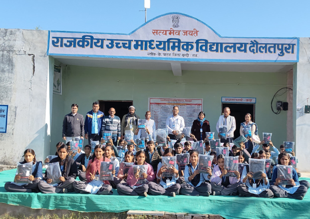 बूंदी – राजकीय उच्च माध्यमिक विद्यालय, दौलतपुरा में दिनांक 08 दिसंबर 2025 को भामाशाह श्रीमती ममता सक्सेना द्वारा कक्षा 9 के विद्यार्थियों के लिए 56 गर्म जर्सियों का वितरण किया गया। इस सेवा कार्य की अनुमानित लागत लगभग ₹20,000 बताई गई।कार्यक्रम के दौरान विद्यालय की प्राचार्य श्रीमती कृष्णा गुप्ता ने भामाशाह का आभार व्यक्त करते हुए कहा कि इस प्रकार की सहायता विद्यार्थियों को सर्दी के मौसम में राहत प्रदान करती है एवं अध्ययन के प्रति उनका उत्साह बढ़ाती है।इस अवसर पर विद्यालय स्टाफ सदस्य बनवारी लाल डूडी, दीपशिखा शर्मा, सीताराम गुर्जर, महेश मीणा, दौलतराम मीणा, गोपाल महावर, यादवेन्दु शर्मा, उमा शर्मा, सुनील कुमार शर्मा, रामस्वरूप मीणा, संतोष कुमार एवं टिंकू मीणा उपस्थित रहे। इसके साथ ही विद्यालय प्रबंधन समिति (एसएमसी) एवं विद्यालय विकास एवं प्रबंधन समिति (एसडीएमसी) के सदस्य तथा बड़ी संख्या में विद्यार्थी कार्यक्रम में शामिल हुए।कार्यक्रम की जानकारी देते हुए शिक्षक अमर सिंह बैरवा ने बताया कि भामाशाह ममता सक्सेना द्वारा पूर्व में भी विद्यालय के विद्यार्थियों के लिए ड्रेस व जर्सी वितरण किया जा चुका है। विद्यालय परिवार ने उनके इस निरंतर सहयोग के लिए हृदय से आभार व्यक्त किया।