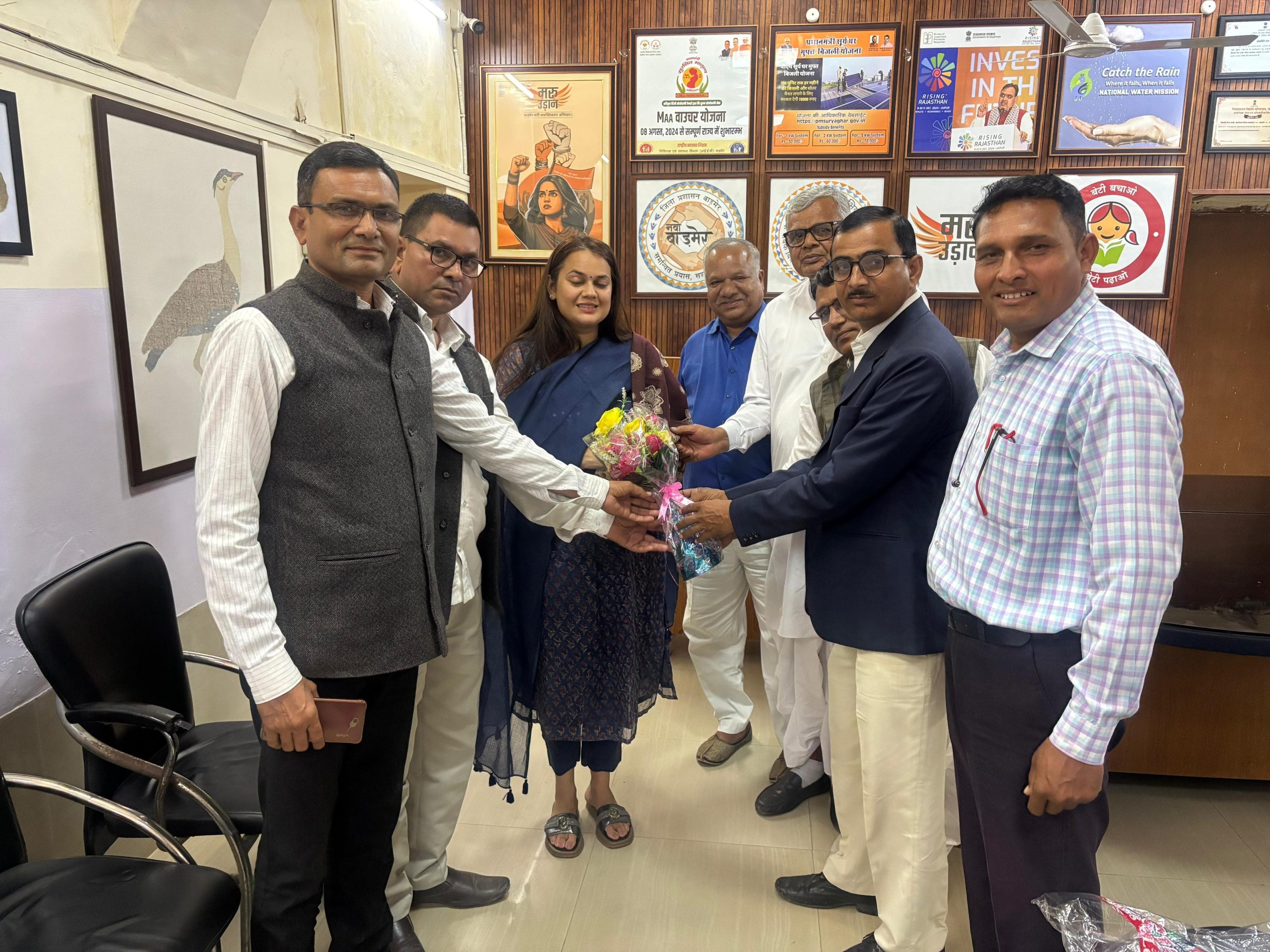 जल संरक्षण के क्षेत्र में उत्कृष्ट कार्यों के लिए जिला कलेक्टर बाड़मेर टीना डाबी को भारत की महामहिम राष्ट्रपति द्रौपदी मूर्मू के हाथों सम्मानित किए जाने पर अम्बेडकर सेवा समिति सांचौर की ओर से शॉल ओढ़ाकर एवं गुलदस्ता भेंट कर अभिनंदन किया गया।