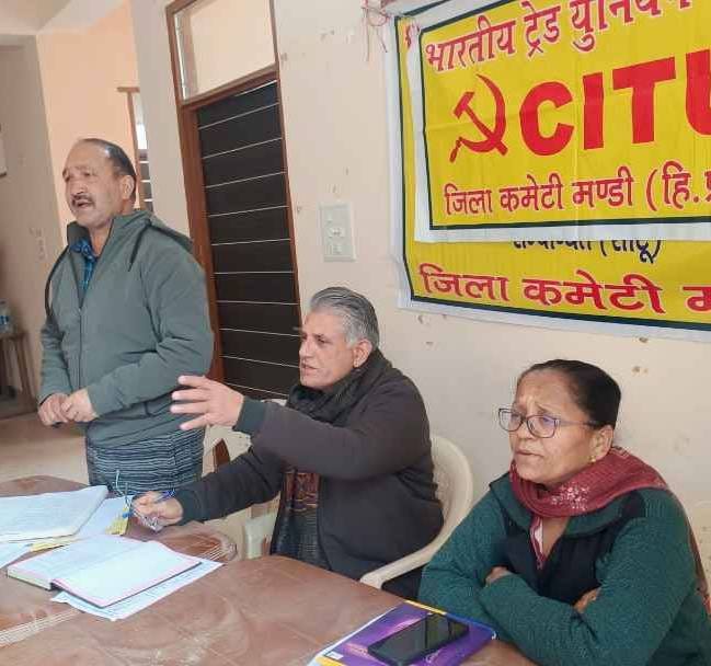 ठाकुर दास भारती मंडी हिमाचल प्रदेश | ज़िला कमेटी की बैठक आज कामरेड तारा चन्द भवन में ज़िला प्रधान भूपेन्द्र सिंह की अध्यक्षता में आयोजित की गई जिसमें महासचिव राजेश शर्मा, गोपेन्द्र शर्मा, प्रवीण कुमार, सुमित कुमार, धन्नजय,मनी राम, बिमला शर्मा, अंजुला,गोदावरी वालिया, तम्मन्ना, अर्चना,सरला,आशा, बबली, नागो देवी, सुदर्शना, माया इत्यादि ने भाग लिया।बैठक में आंगनवाड़ी,रेहड़ी-फहड़ी, मिड डे मील, एम्बुलेंस कर्मचारी, मनरेगा एवं निर्माण, फोरलेन इत्यादि यूनियनों के पदाधिकारियों ने भाग लिया।बैठक में 12 फ़रवरी को देशव्यापी हड़ताल को सफ़ल बनाने की योजना तैयार की गई।जिसका आह्वान सीटू व अन्य राष्ट्रीय स्तर की ट्रेड यूनियनों ने केंद्र सरकार द्धारा ख़त्म किये गए 29 श्रम एवं मनरेगा क़ानून के विरोध में किया है।वहीं हिमाचल प्रदेश में 108एवं 102 एम्बुलेंस कर्मचारियों की मांगों को न मानने के विरोध में पांच दिन की हड़ताल की जाएगी जो 12 फ़रवरी सुबह 9 बजे से 17 फ़रवरी सुबह तक की जायेगी जिसमें ज़िला स्तर पर प्रदर्शन और धरने आयोजित किए जाएंगे और पांचवे दिन शिमला में राज्य स्तरीय प्रदर्शन किया जायेगा। मंडी ज़िला में 12 फ़रवरी को मंडी,जोगिंदर नगर, सरकाघाट,निहरी और बालीचौकी में प्रदर्शन किए जाएंगे।जिनमें आंगनबाड़ी कार्यकर्ता, मिड डे मील वर्कर, मनरेगा मज़दूर और एम्बुलेंस कर्मचारी तथा अन्य मज़दूर यूनियनें भाग लेंगी।बैठक मेंआठ मार्च को अंतराष्ट्रीय महिला दिवस पर महिला मज़दूरों के अधिकारों की रक्षा करने तथा अन्य आर्थिक मांगों को पूरा करने के लिए महिला समिति के साथ मिलकर कार्यक्रम आयोजित किए जाएंगे। बैठक में राज्य श्रमिक कल्याण बोर्ड से मज़दूरों के लंबित लाभ जारी न होने, आंगनबाड़ी वर्करों को सुप्रीम कोर्ट के फैसले के अनुसार ग्रेच्यूटी व अन्य सुविधाएं देने, पिछले चार महीने का वेतन जारी करने, वरकरों को क्लास थ्री का कर्मचारी घोषित करने,प्री पराईमरी का दर्जा देने व पेंशन सुविधा इत्यादि मांगों को लेकर यूनियन 12 फ़रवरी को हड़ताल करेगी।उधर मिड डे मील वरकरों को हरियाणा की तर्ज़ पर वेतन देने, दस माह के बजाए 12 माह का वेतन,छँटनी पर रोक लगाने, प्रत्येक स्कूल में दो दो वर्कर नियुक्त करने,वर्करों को सरकारी कर्मचारी घोषित करने, सभी प्रकार की छुटियाँ देने व मर्ज किए जा रहे स्कूलों के वरकरों को दूसरे स्कूलों या विभाग में समायोजित करने की मांग उठाई गई। मंडी नगर निगम तथा सुंदरनगर, नेरचौक व अन्य नगर परिषद क्षेत्रों में रेहड़ी फहड़ी मज़दूरों की मांगों व मंडी में रेहड़ी वालों को बाईपास भेजने की मुहिम का भी विरोध करने का निर्णय बैठक में लिया गया।इसके अलावा आउटसोर्स व प्रवासी मज़दूरों को प्रथमिकता पर संगठित करने का निर्णय 