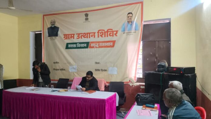 करौली, 23 जनवरी। जिला कलक्टर नीलाभ सक्सेना ने शुक्रवार को तहसील करौली में ग्राम पंचायत खुबनगर के राजीव गांधी सेवा केन्द्र में चल रहे ग्राम उत्थान शिविर का निरीक्षण किया, निरीक्षण के दौरान उन्होने अधिकारी एवं कर्मचारियों से कहा कि शिविरों के दौरान आमजन को अधिक से अधिक लाभान्वित करवाना सुुनिश्चित करें।जिला कलक्टर निरीक्षण के दौरान शिविर में आमजन को संबोधित करते हुए बोल रहे थे। उन्होंने बताया कि इस दौरान ग्रामीण एवं आमजन के कृषि हेतु बाड़बंदी, डिग्गी एवं फार्म पॉण्ड निर्माण से संबंधित स्वीकृतियाँ, ड्रिप व स्प्रिंकलर सिंचाई, पाइपलाइन एवं जल संसाधन कार्य, किसान क्रेडिट कार्ड, सहकारी ऋण एवं कृषि उपकरणों हेतु आवेदन, पशुओं का बीमा, टीकाकरण एवं रोग नियंत्रण सेवाएँ, स्वयं सहायता समूहों एवं महिला सशक्तिकरण योजनाओं से जोड़ना, युवा स्वरोजगार एवं प्रधानमंत्री सूर्यघर योजना का पंजीकरण, सामाजिक सुरक्षा योजनाओं से संबंधित सेवाओं का निस्तारण आदि कार्य किये जायेंगे। इस अवसर पर उन्होंने जिले के किसानों से अपील कि की अधिक से अधिक किसान इन शिविरों में भाग लेकर लाभांवित हों और अभियान को सफल बनाएं। जिला कलक्टर ने इस दौरान पात्र लाभार्थियो को भी विभिन्न योजनाओं सेे लाभान्वित किया इस अवसर पर संबिधत विभाग के अधिकारी एवं कर्मचारी उपस्थित थे।