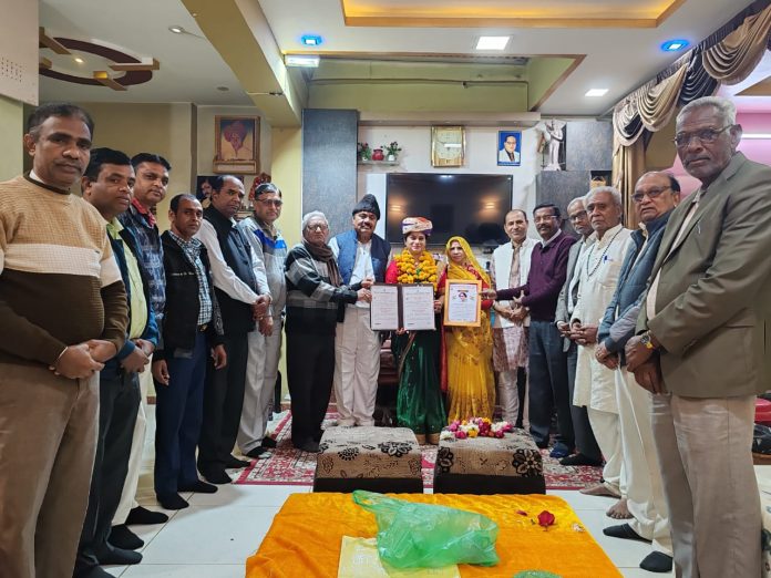 बाॅसवाडा: डॉ आंबेडकर मेमोरियल वेलफेयर सोसाइटी बांसवाड़ा एवं यादव समाज जिला बांसवाड़ा के संयुक्त तत्वावधान में बांसवाड़ा जिले की यादव समाज की पीएचडी अवार्ड से सम्मानित प्रथम महिला डॉ रीना यादव धर्मपत्नी कांति लाल यादव को शोध विषय “दक्षिणी राजस्थान के जनजाति क्षेत्र में महिलाओं के विधिक अधिकार ” पर गोविंद गुरु जनजाति विश्वविद्यालय से पीएचडी अवार्ड प्राप्त करने पर समाज जनों के द्वारा शंकरलाल यादव रिटायर्ड नर्सिंग अधीक्षक के घर पर पहुंचकर डॉ रीना यादव का माला ,पगड़ी, व प्रतीक चिन्ह अर्पित कर सम्मान किया गया ।महासचिव मणिलाल यादव के द्वारा अभिनंदन पत्र का वाचन किया गया। कार्यक्रम में शंकरलाल यादव, कालूराम यादव बोरी, विट्ठल यादव घाटोल, शंकरलाल यादव, पार्षद धनेश्वर यादव, पार्षद भरत यादव, अशोक कुमार यादव, अमर जी भगत, हीरालाल ठेकेदार, अजाक के महासचिव विट्ठल यादव , हीरालाल तेजपुर, रमेशचंद्र परमार आदि के द्वारा माला पहनकर सम्मान किया गया । डॉ रीना यादव ने अपनी पढ़ाई के दौरान के अनुभव साझा किए। डॉ कांति लाल यादव ने समाज को शिक्षा के दृष्टिकोण से आगे बढ़ाने हेतु युवाओं को प्रेरित करने पर जोर दिया। आभार प्रदर्शन की रस्म शंकरलाल यादव रिटायर्ड नर्सिंग अधीक्षक द्वारा अदा की गई। कार्यक्रम का संचालन महासचिव मणिलाल यादव के द्वारा किया गया।