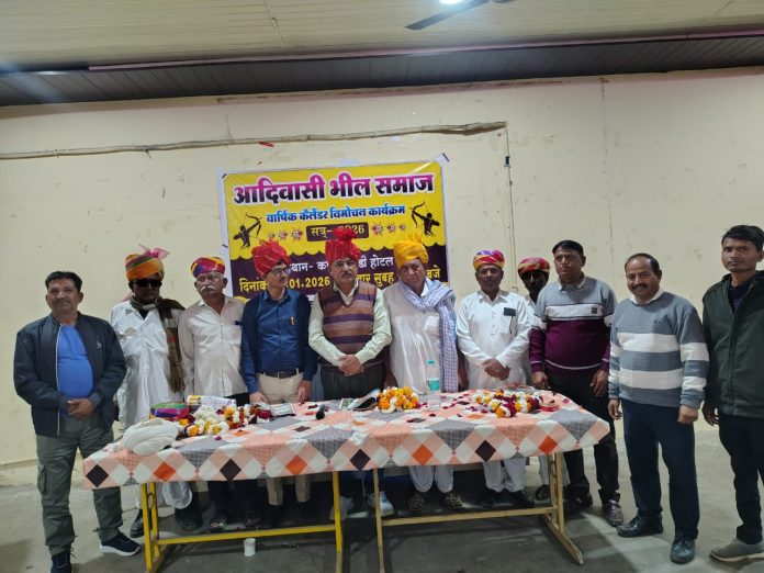 भील समाज के वार्षिक कैलेंडर का विमोचन, शिक्षा व नशा मुक्ति पर दिया गया जोर।
