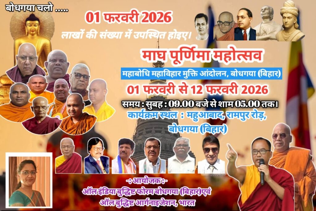 ऑल इंडिया बुद्धिस्ट फोरम एवं ऑल बुद्धिस्ट ऑर्गेनाइजेशन भारत के संयुक्त तत्वावधान में संचालित महाबोधि महाविहार मुक्ति आंदोलन को 12 फरवरी 2025 (माघ पूर्णिमा) को एक वर्ष पूर्ण हो जाएगा। इस अवसर पर आंदोलन को और अधिक मजबूती प्रदान करने के उद्देश्य से 1 फरवरी से 12 फरवरी तक बोधगया में धरना स्थल पर विविध कार्यक्रमों का आयोजन किया जाएगा।