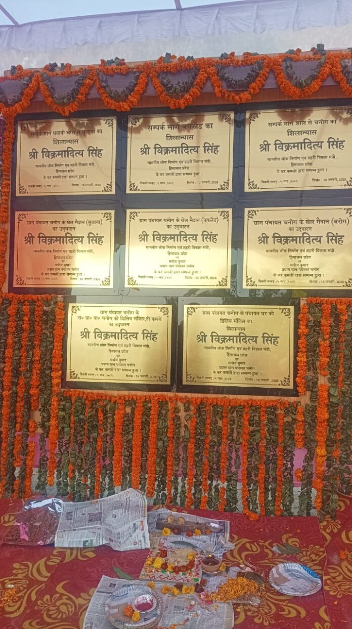 शिमला एयरपोर्ट (जगदीश कश्यप) शिमला ग्रामीण की अंतिम पंचायत चनोग में विक्रमादित्य सिंह लोक निर्माण एवं शहरी विकास मंत्री का विकासात्मक कार्यों में गति प्रदान करने हेतु आगमन हुआ। जिसमें 3.50 करोड़ ₹ की विभिन्न परियोजनाओं के कार्यों का शिलान्यास एवं उद्घाटन करते हुए। उन्होंने कहा कि हर गांव को सड़क सुविधा से जोड़ना उनकी प्राथमिकता है | साथ ही खेल मैदानों का भी विस्तार किया किया जा रहा। उन्होंने कहा कि यह शिमला जनपद की आखिरी पंचायत है। जिसमें विकास के कार्यों में तीव्रता लाने हेतु वह प्रतिबद्ध हैं। आगे बताया कि बहुत लंबे समयावधि से की जा रही मांग को पूर्ण करने हेतु इन तीन सड़कों को पक्का किया जा रहा है यथा– संपर्क सड़क कफलेड को पक्का करने को 89 लाख ₹, दूसरी संपर्क सड़क पोआबो से सुजाता को पक्का व चौड़ करन हेतु 86 लाख ₹ तथा संपर्क सड़क शाल से चनोग को पक्का व चौड़ा करने के लिए 90 लाख ₹ खर्च किए जाएंगे। उसके बाद उन्होंने कई विकास कार्यों के शिलान्यास भी किये जिसमें लोक निर्माण मंत्री द्वारा कगल मैदानों के उद्घाटन में रेस्ट हाऊस पोइबो पर 39 ₹लाख ₹, प्राथमिक पाठशाला चनोग के दो अन्य कमरों के लिए 8 लाख ₹, खेल मैदान कफलेड पर 3 लाख ₹, सुजाता के मैदान पर 5 लाख तथा बरोग के मैदान पर 19 लाख ₹ खर्च किए गए हैं। आगे उन्होंने शिमला ग्रामीण के विकास हेतु पूर्व मुख्यमंत्री वीरभद्र सिंह को भी याद किया। उन्हीं के पदचिह्नों पर चलने को वह अपने को ढाल रहे हैं। आगे बताते हुए कहते हैं कि शिमला के आसपास के कृषक व बागवान नगदी फसलों को उगा कर आत्मनिर्भरता की ओर बढ़ रहे हैं। एतदर्थ उन्होंने और सुधार हेतु भी बागवानों व कृषकों से अपेक्षा चाही। उन्होंने पोआबो रेस्ट हाऊस को इकोटूरिज़म की ओर बढ़ाने हेतु प्रयास पर बल देने की भी बात की जिससे स्थानीय युवाओं को रोज़गार व पर्यटन को भी बढ़ावा मिलने की बात की। आगे बताते कहा प्रदेश में समान विकास करने कि प्रयास किया जा रहा है। इसी को मद्दे नज़र रखते हुए शालाघाट से शिमला फोरलेन में कुछ परिवर्तन किया जाएगा। अब नमूना, खलगव जाठिया देवी से होकर जाएगा जिसकी प्रगति प्रक्रिया निरंतर चल रही है। एतदर्थ कल्याण संगठन बनाने हेतु लोगों को आवाहित किया जिससे समय आने पर अपने अधिकारों के लिए संगठित हो कर अपनी आवाज उठाने के प्रयास किए जा सकेंगे। जिससे फोरलेन में इस्तेमाल अपनी ज़मीन का पूरा दाम मुहैया करवाया जा सकेगा। आगे उन्होंने बताया कि पुराने शालाघाट से शिमला के लिए राज्य राजमार्ग के अंतर्गत लोक निर्माण विभाग को आ चुकी है जिसको केंद्र सरकार ने 25 करोड़ की राशि मंजूर की। आगे बताया कि 6.10 करोड़ की राशि चनोग पंचायत में खर्च हो चुकी है तथा 2 करोड़ के कार्य चल रहे हैं। PMGSY-4 के अंतर्गत शिमला ग्रामीण की विस क