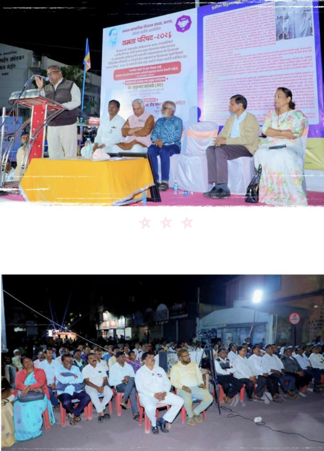 कराड प्रतिनिधी : विश्वरत्न डॉ. बाबासाहेब आंबेडकरांना कराड नगरपालिकेने २ जानेवारी, १९४० रोजी मानपत्र प्रदान केल्याच्या तसेच त्यानंतर डॉ. बाबासाहेब आंबेडकरांनी तत्कालीन महारवाड्याला भेट दिल्याच्या घटनेला आज ८६ वर्षे पूर्ण होत आहेत. या दिवसाच्या स्मृती दिनानिमित्त समता सामाजिक विकास संस्थेच्या वतीने, भारतरत्न डॉ. बाबासाहेबांच्या स्मारकाच्या प्रांगणात या समता परिषदेचे आयोजन केलेले होते.