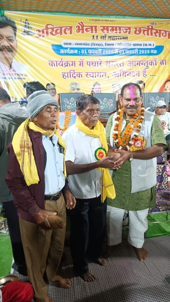 बिलासपुर। अखिल भैना समाज छत्तीसगढ़ की 16वीं आमसभा का भव्य और ऐतिहासिक आयोजन ग्राम नवागांव, तहसील सारागांव, जिला सक्ती में तीन दिवसीय महा सभा के रूप में सफलतापूर्वक संपन्न हुआ। इस महा आयोजन में समाज के सामाजिक नियमों, परंपराओं एवं रीति-रिवाजों पर गहन चिंतन–मनन किया गया।