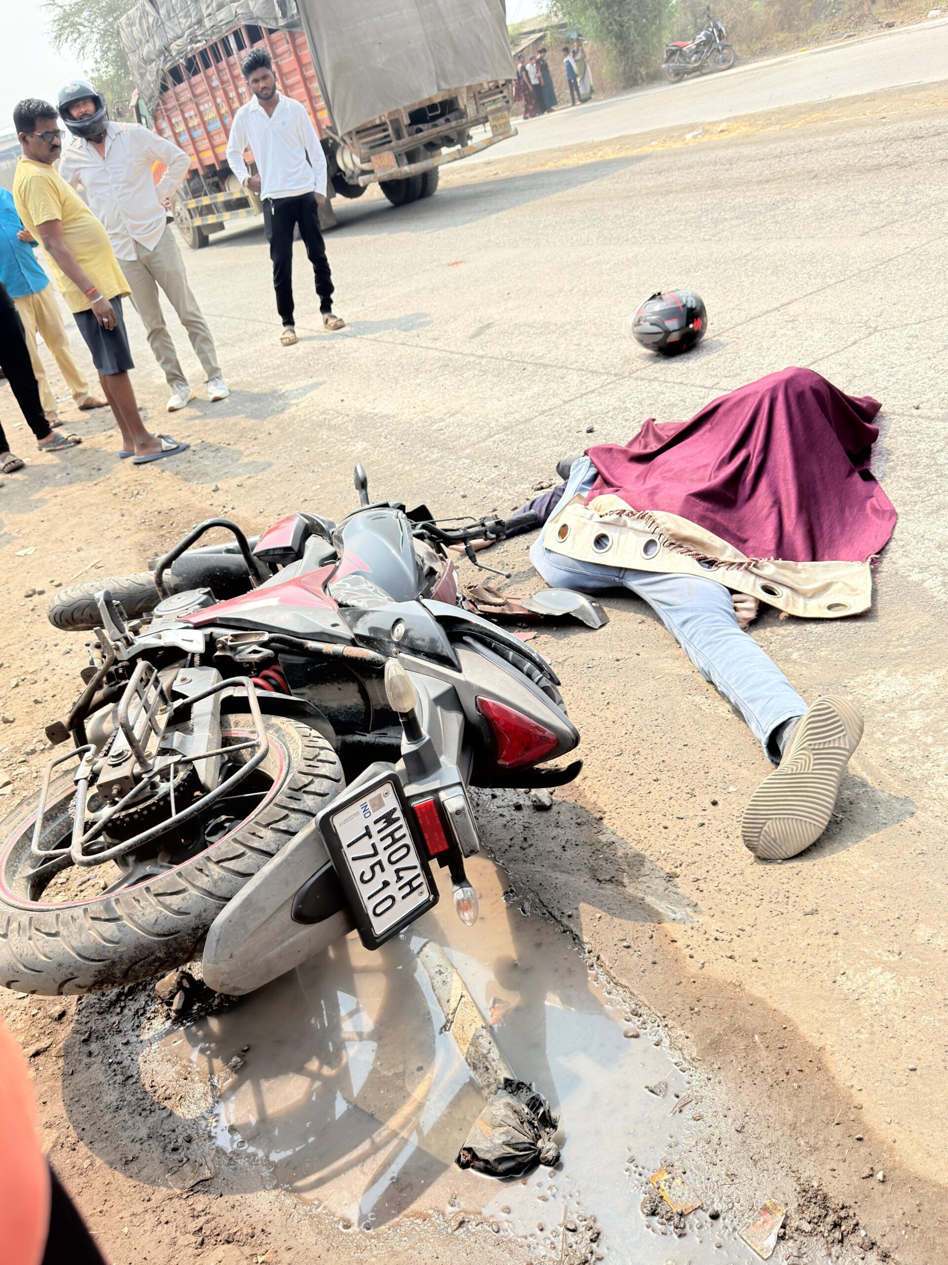 ठाणे : भिवंडी तालुक्यातील दुगाड फाटा ग्रामपंचायत हद्दीत भिवंडी -वाडा या महामार्गावर महाळुंगे गावचा रहिवासी जयेश सुर्वे या 37 वर्षीय युवकाचा महार्गावरून येणाऱ्या कंटेनरच्या जोरदार धडकेत जागीच मृत्यू झाला.सदरील युवक आपल्या वयक्तिक कामासाठी महामार्गाच्या किनाऱ्यावर थांबला असतांना मागून येणाऱ्या मालवहू कंटेनर कडून जोरदार धडकेमुळे युवक खाली कोसळून डोक्याच्या भागात जोरदार आघातामुळे जागीच मृत्यू झाला .पोलीस प्रशासना कडून तातडीने सदर घटना स्थळी धाव घेत माहिती घेऊन सदर कंटेनर चालक ह्यास ताब्यात घेऊन अपघाती गुन्हा दाखल करण्यात आला आहे.ह्या घटनेमुळे स्थानिक लोकांत अपघाताविषयी हळहळ व्यक्त केली जात आहेह्या घडलेल्या अपघातसंदर्भात पुढील तपासणी पोलीस प्रशासन करीत आहेत.