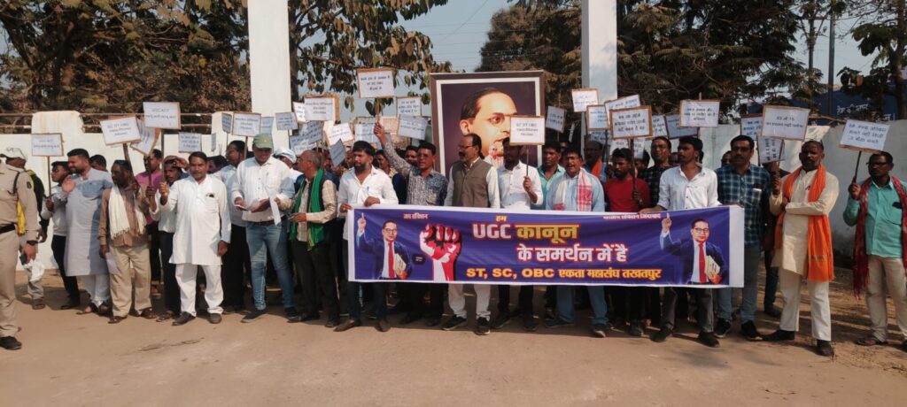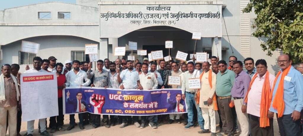 तखतपुर में दिनांक 20 फरवरी, शुक्रवार को यूजीसी (UGC) बिल के समर्थन में SC ST OBC MIN महासंघ छत्तीसगढ़, छत्तीसगढ़िया सर्व समाज एवं सरपंच संघ तखतपुर के संयुक्त तत्वावधान में एक विशाल रैली का आयोजन किया गया। रैली दोपहर 2 बजे बस स्टैंड तखतपुर से प्रारंभ होकर एसडीएम कार्यालय पहुंची, जहां प्रतिनिधिमंडल ने भारत के राष्ट्रपति के नाम ज्ञापन सौंपा।