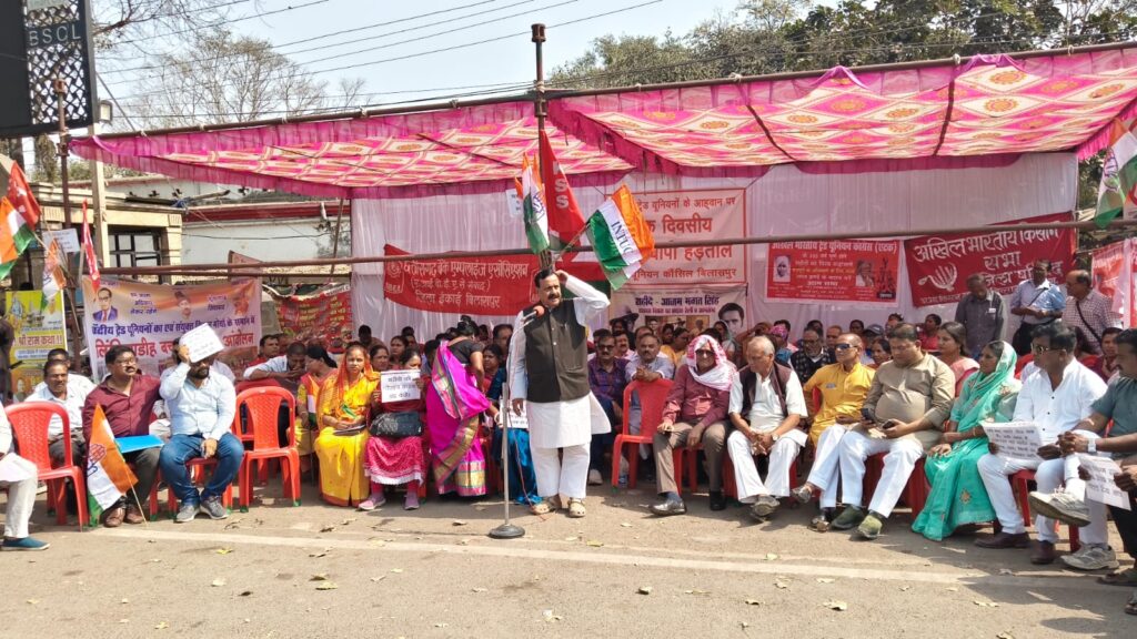 10 सूत्रीय मांगों पर राष्ट्रव्यापी हड़ताल सफल, बिलासपुर में मजदूर–किसानों का जोरदार प्रदर्शन