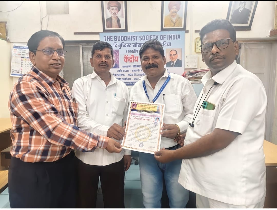 दि बुद्धिस्ट सोसायटी ऑफ इंडिया (भारतीय बौद्ध महासभा) तर्फे आयु. संजय ज्ञानोबा पारडे यांची बौद्धाचार्य पदी नियुक्ती.
