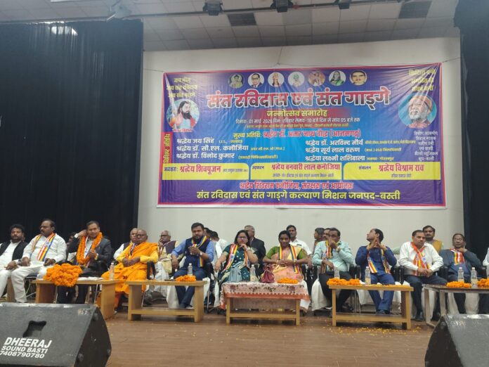 बस्ती। रविवार को संत गाडगे एवं संत रविदास कल्याण मिशन द्वारा संत गाडगे एवं संत रविदास जयंती के उपलक्ष्य में पं. अटल बिहारी वाजपेयी प्रेक्षागृह में एक भव्य कार्यक्रम का आयोजन किया गया। कार्यक्रम में समाज सुधार, शिक्षा, समानता और सामाजिक एकता जैसे मुद्दों पर वक्ताओं ने विस्तार से अपने विचार रखे।