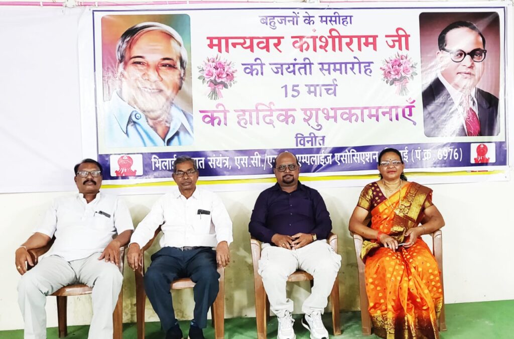 भिलाई इस्पात संयंत्र, एससी/एसटी एम्पलाइज एसोसिएशन के तत्वावधान में डॉ अम्बेडकर प्रेरणा स्थल सेक्टर 6 में बहुजनों के मसीहा मान्यवर कांशीराम जंयती समारोह एसोसिएशन के अध्यक्ष कोमल प्रसाद की अध्यक्षता एवं मुख्य अतिथि भागवत बंजारे जी वरिष्ठ सामाजिक कार्यकर्ता के मुख्य आतिथ्य में सम्पन्न हुआ।