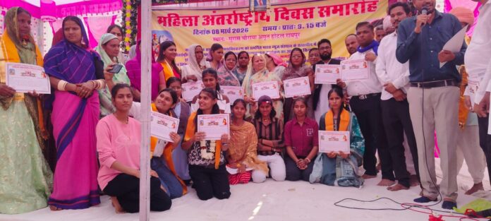 रायपुर। अंतर्राष्ट्रीय महिला दिवस के अवसर पर सुरास चौराया स्थित अमृत होटल रायपुर में भारत न्यूज़ संस्थान के तत्वावधान में भव्य महिला अंतर्राष्ट्रीय दिवस सम्मान समारोह आयोजित किया गया। कार्यक्रम में क्षेत्र की प्रतिभाशाली छात्राओं, महिला शिक्षिकाओं तथा विभिन्न विभागों में कार्यरत महिलाओं को प्रशस्ति पत्र प्रदान कर एवं माला पहनाकर सम्मानित किया गया। समारोह में सैकड़ों की संख्या में महिलाएं व पुरुष उपस्थित रहे और नारी शक्ति के सम्मान का संदेश दिया गया।