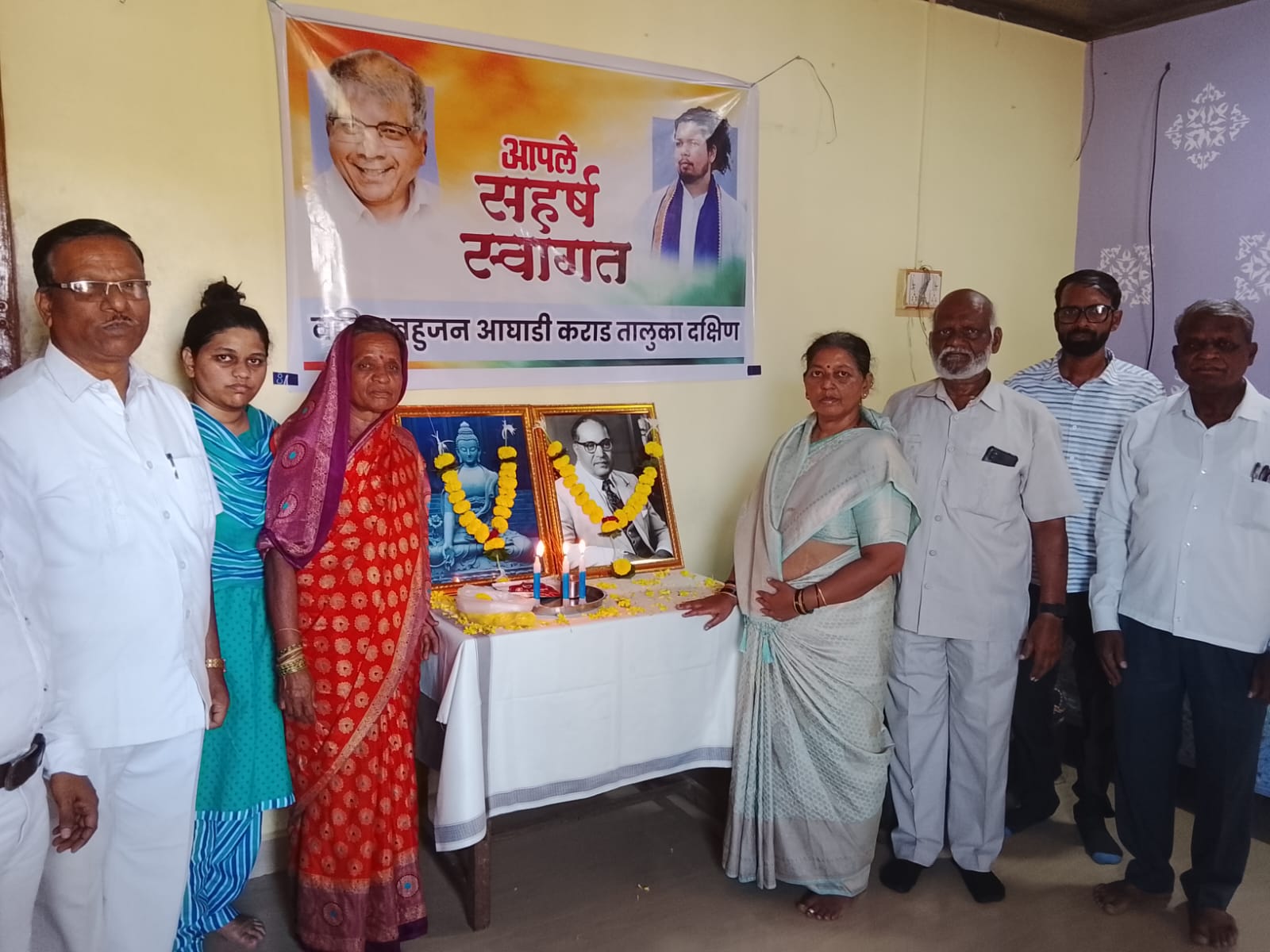 वंचित बहुजन आघाडी कराड तालुका दक्षिण यांच्या वतीने कोळे(शिंगणवाडी )येथे डॉ बाबासाहेब आंबेडकर यांची 135वि जयंती दिपक कांबळे यांच्या घरी दुपारी 12 वा. साजरी करण्यात आली प्रथम भगवान बुद्ध व बोधिसत्व डॉ.बाबासाहेब आंबेडकर