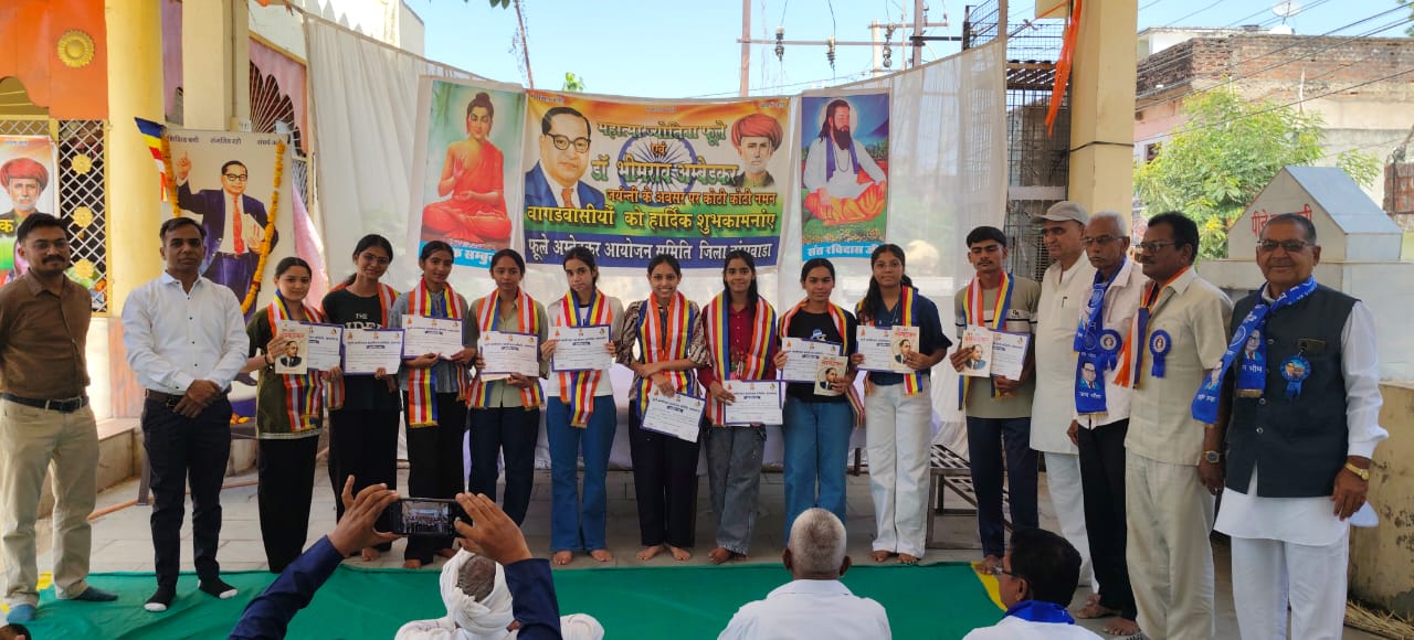 बाॅसवाडा: भारत रत्न डॉ. भीमराव अंबेडकर की 135वीं जयंती के अवसर पर खांन्दु कॉलोनी में फुले अंबेडकर शिक्षा समिति द्वारा भव्य कार्यक्रम आयोजित किया गया। कार्यक्रम में मुख्य अतिथि डॉ. किशन सालवी, विशिष्ट अतिथि डॉ. जितेंद्र जाटव एवं समिति अध्यक्ष महेंद्र यादव शंकरलाल यादव सहित कई गणमान्य लोग उपस्थित रहे। कार्यक्रम की शुरुआत अंबेडकर प्रतिमा पर माल्यार्पण कर श्रद्धांजलि अर्पित करने के साथ हुई।वक्ताओं ने अंबेडकर के विचारों को याद करते हुए शिक्षा को समाज जागरण का सबसे बड़ा माध्यम बताया और उनके बताए मार्ग पर चलने का संकल्प दिलाया। इस दौरान 10वीं एवं 12वीं कक्षा में उत्कृष्ट प्रदर्शन करने वाले छात्र-छात्राओं को मंच पर प्रमाण पत्र देकर सम्मानित किया गया।आरती ने 95.67% अंक प्राप्त कर विशेष उपलब्धि हासिल की, जबकि कोमल (89%) और मुस्कान (86%) भी टॉप विद्यार्थियों में रहीं। अन्य विद्यार्थियों में जानवी, ईशा, कौशल्या, जय और इन्द्र सहित कई प्रतिभाओं ने अच्छे अंक प्राप्त कर क्षेत्र का नाम रोशन किया।कार्यक्रम में बड़ी संख्या में समाज के महिला-पुरुष एवं युवा मौजूद रहे। अंत में आयोजकों ने विद्यार्थियों के उज्ज्वल भविष्य की कामना करते हुए उन्हें आगे बढ़ने के लिए प्रेरित किया।